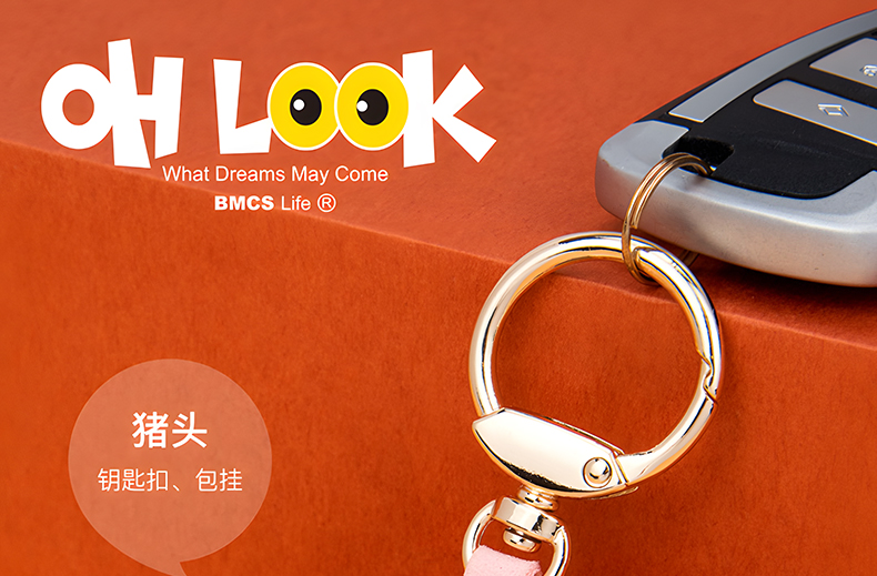 八门虫社LOOK动物头多功能牛皮钥匙扣包挂-猫头/猪头/狗头/熊猫头