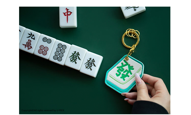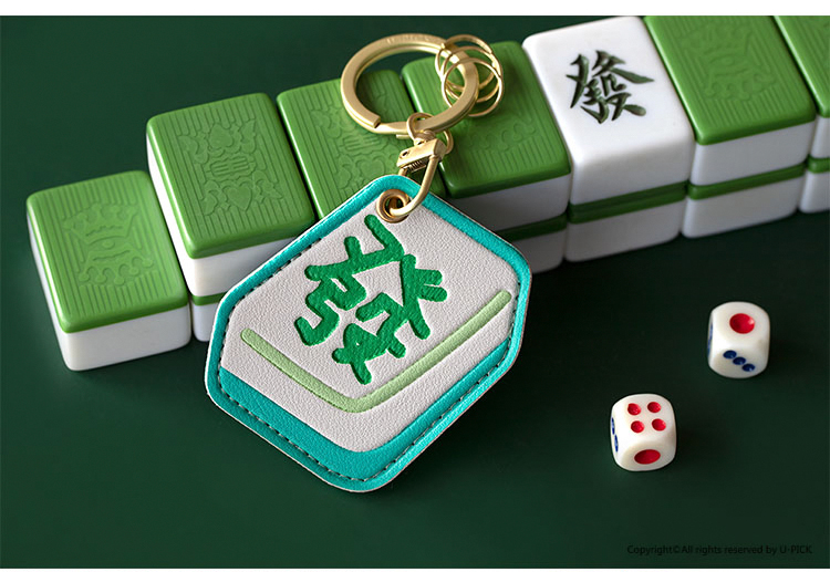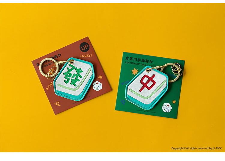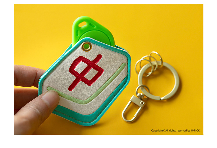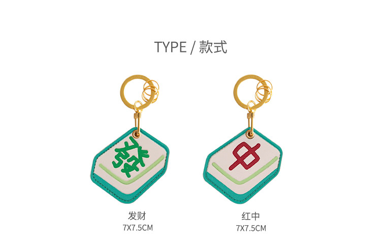 原品麻将系列皮革门禁卡套钥匙扣-发财/红中
