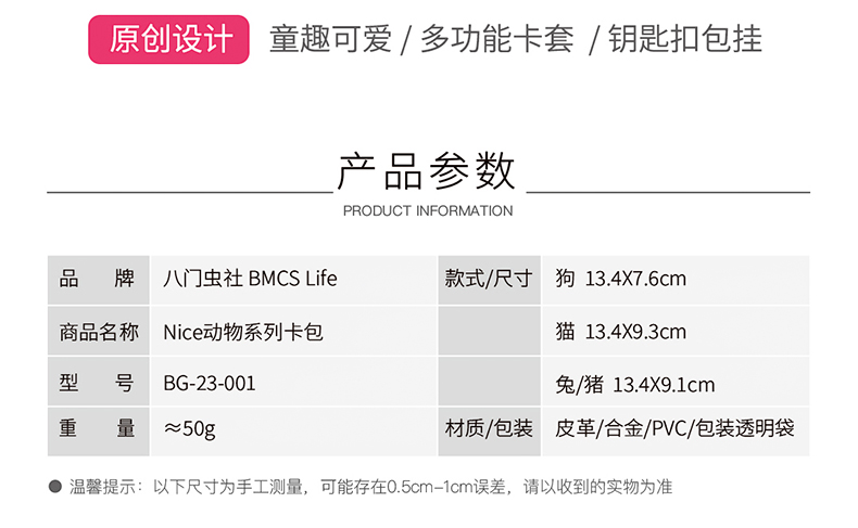 八门虫社NICE动物系列卡包-狗/猫/兔/猪