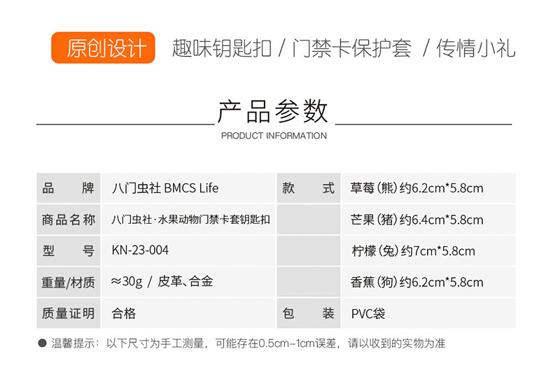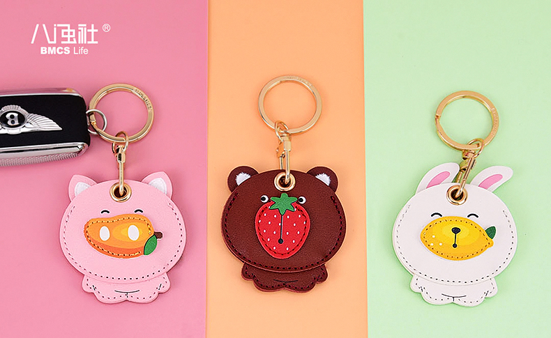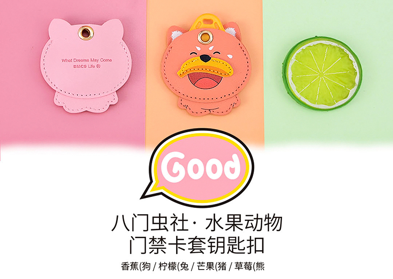 八门虫社水果动物门禁卡套钥匙扣-草莓(熊)/芒果(猪)/柠檬(兔)/香蕉(狗)
