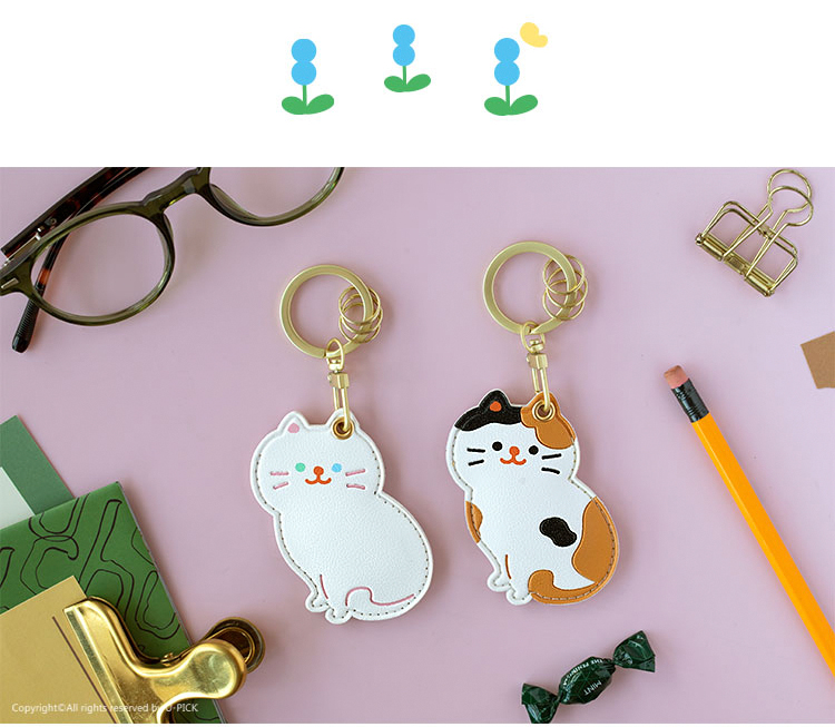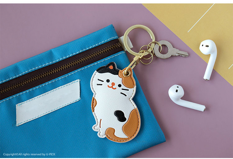原品皮革门襟卡套钥匙扣-白猫/花猫/黑猫/橘猫