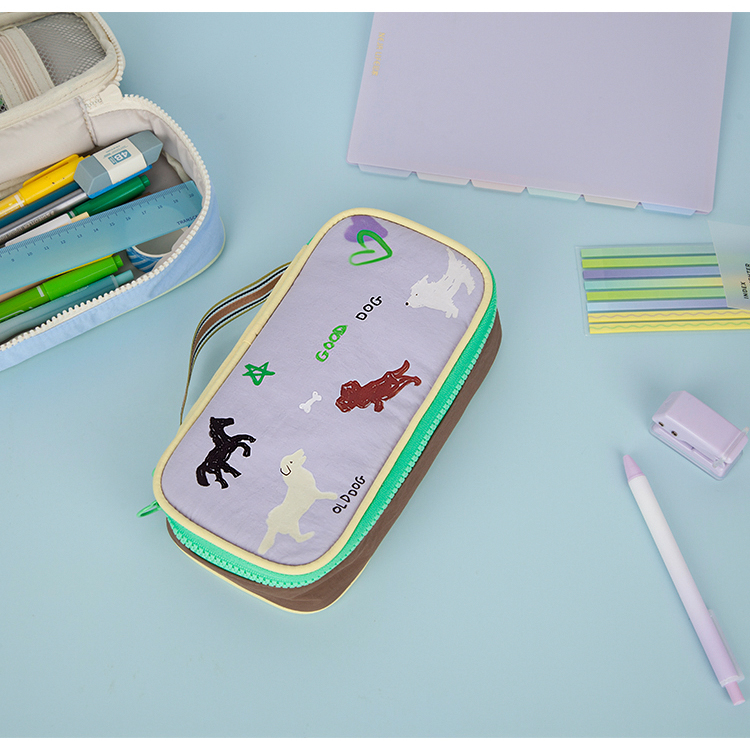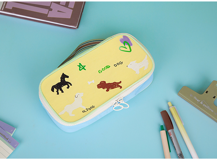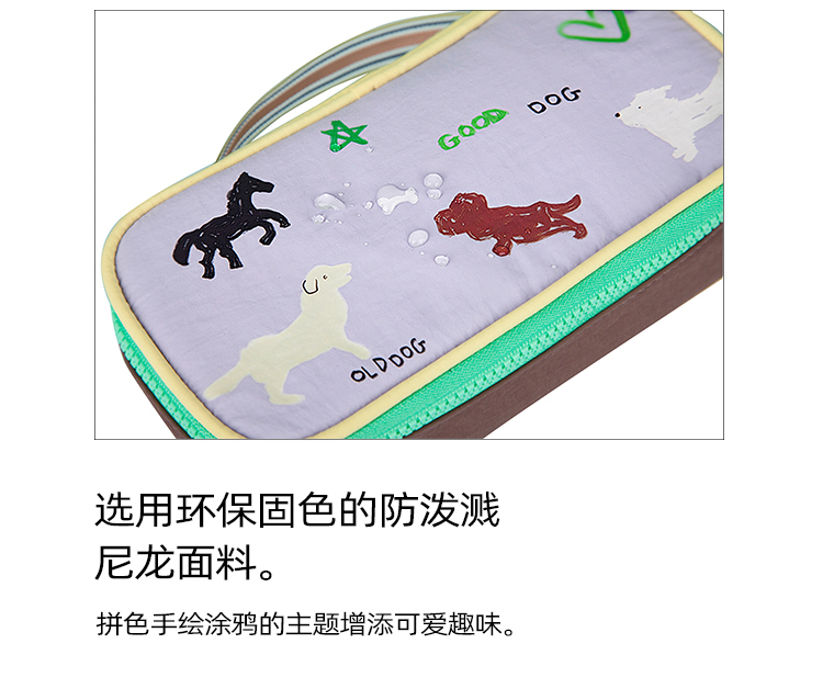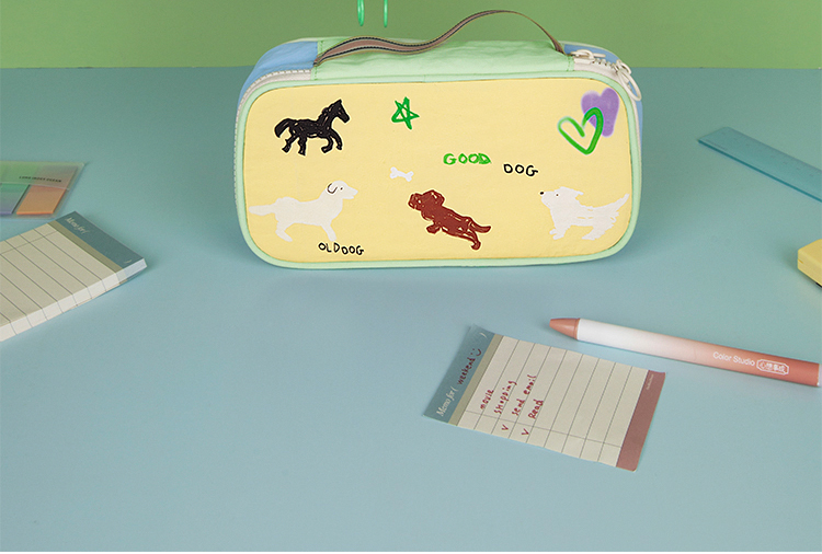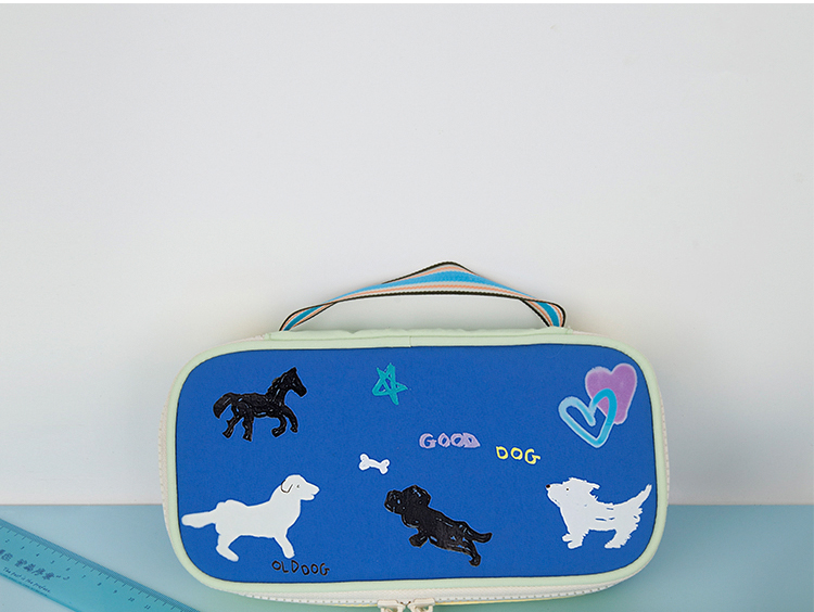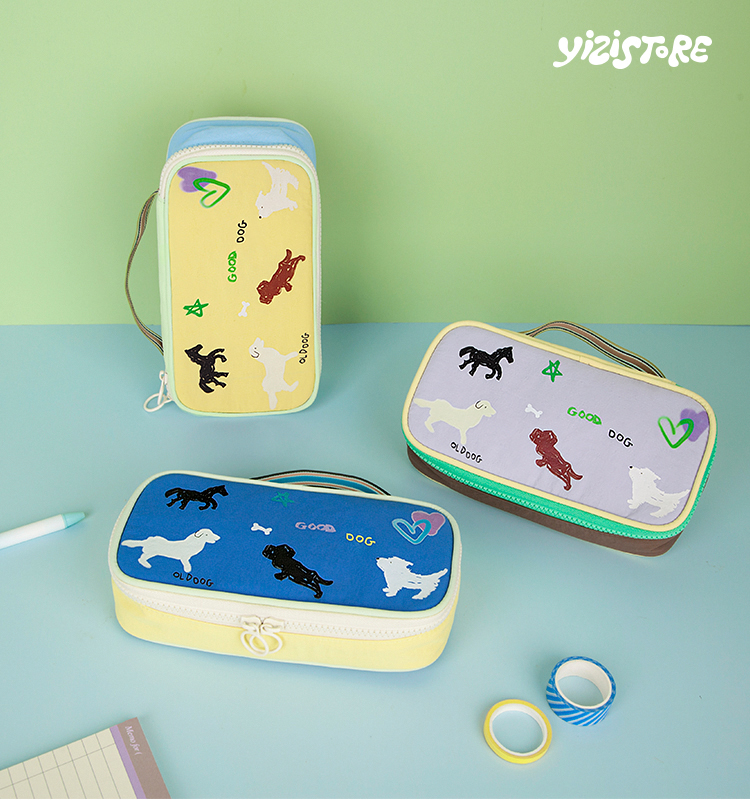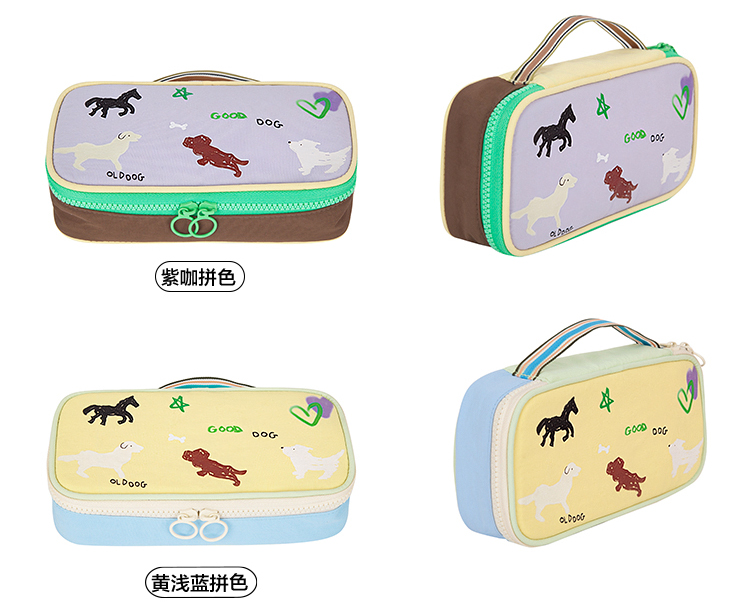 YIZI涂鸦小狗拼色笔袋-深蓝黄/浅蓝黄/紫咖