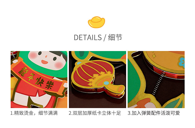 原品龙年烫金礼金袋(6枚入)-前程似锦/欣欣向龙/祥龙献瑞/龙运安康/新年快乐/开工大吉/平安顺意