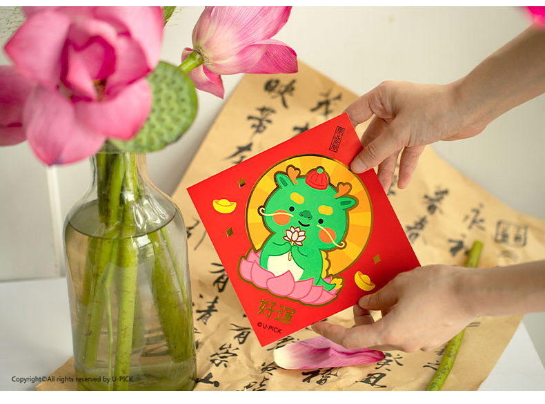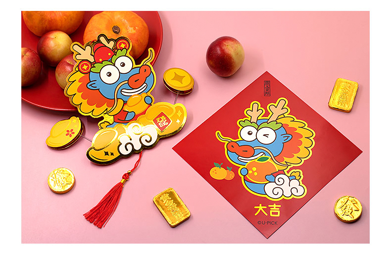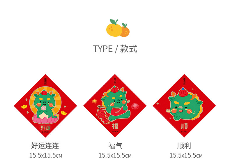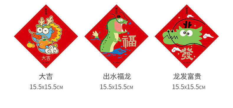 原品龙年彩色小门贴-好运连连/大吉/福气/顺利/出水福龙/龙发富贵