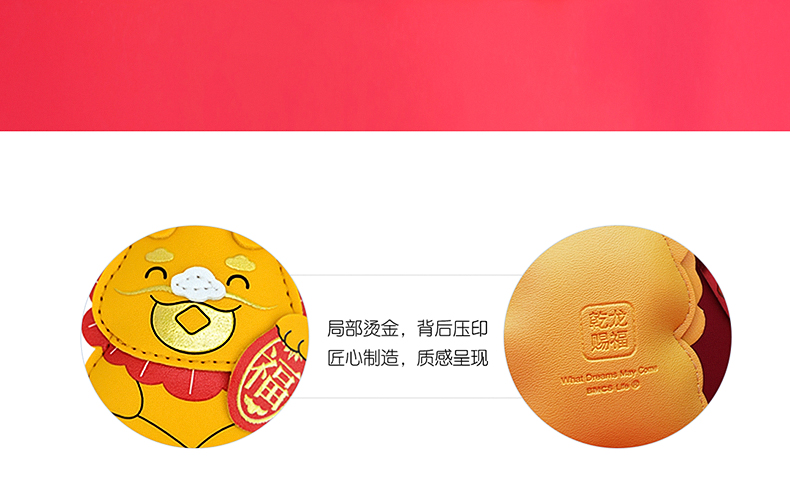 咕咕部落小方虎刺绣挂件-布艺/皮革