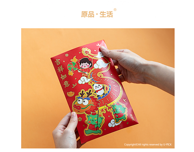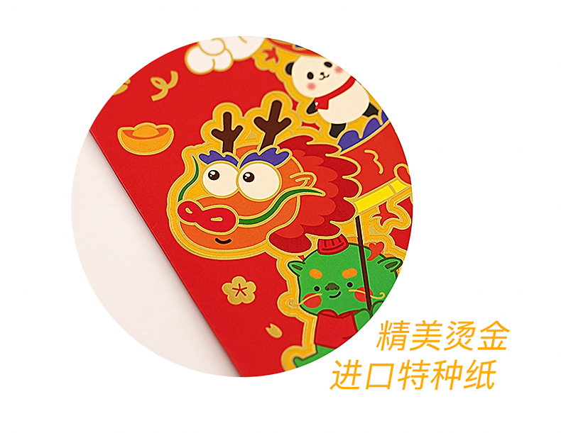 原品龙年彩色红包礼金袋(六枚入)-恭喜发财/平安健康/迎春接福/龙行好运