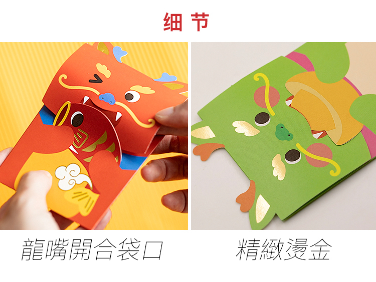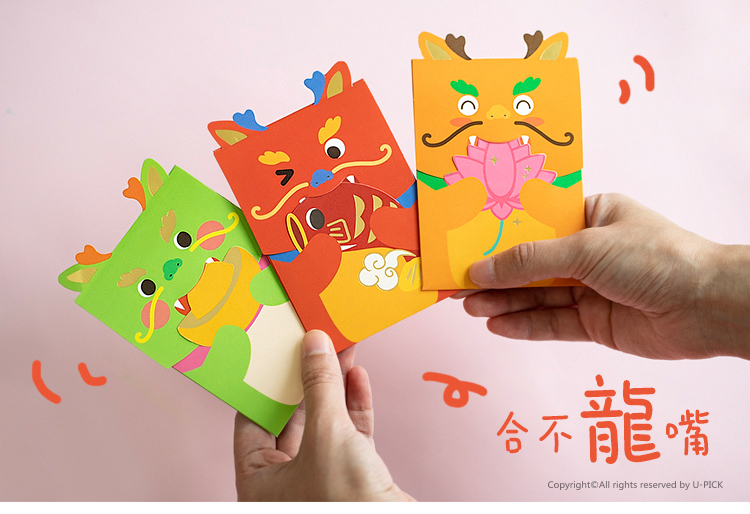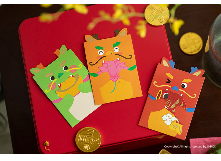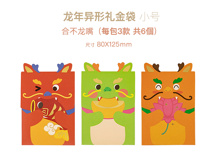 原品龙年合不龙嘴小号异形礼金袋(3款6枚)