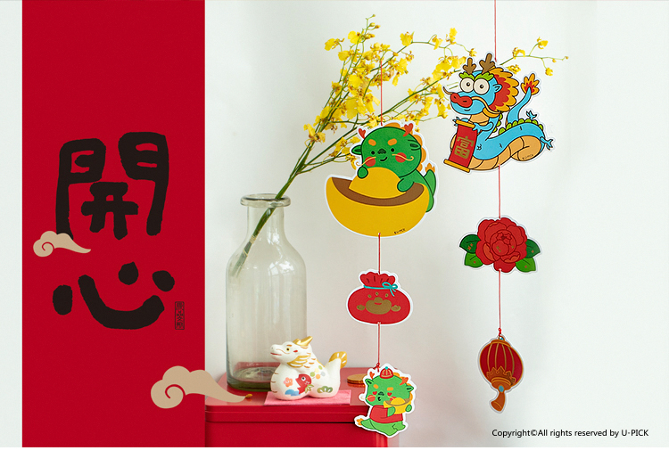 原品龙年异形纸卡挂饰-招财进宝/龙华富贵