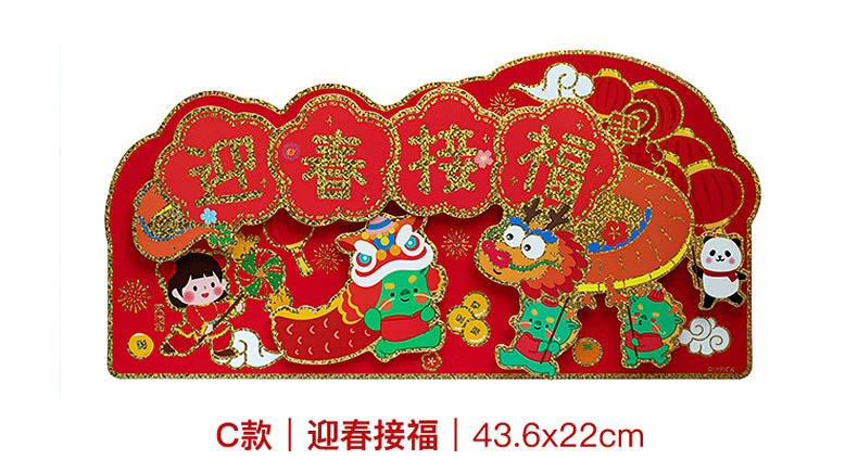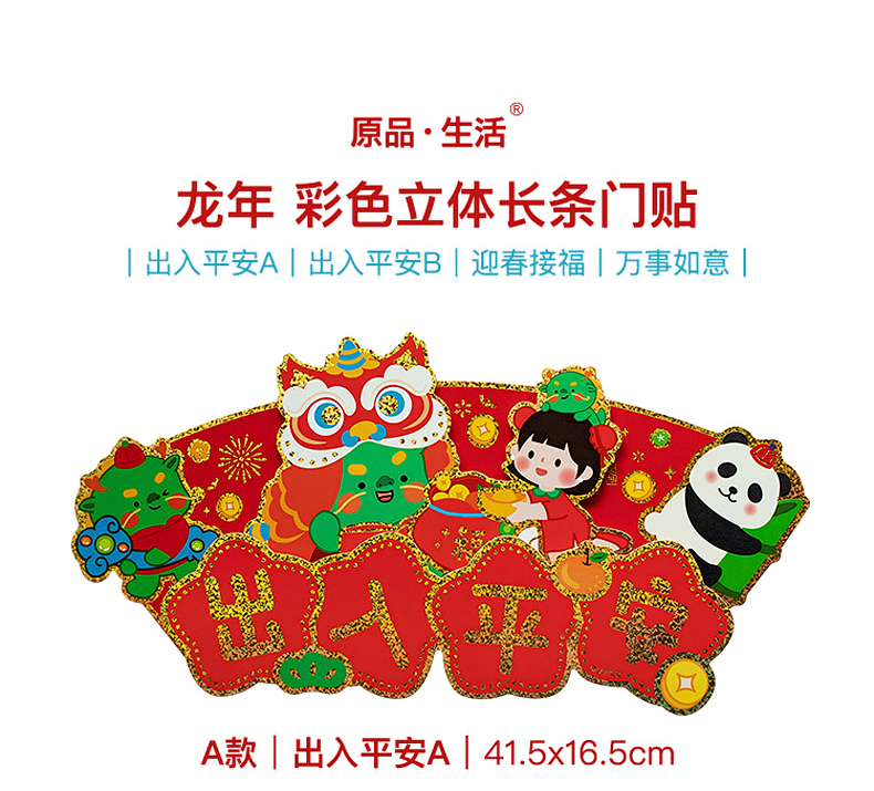 原品龙年彩色立体长条门贴-出入平安A/出入平安B/迎春接福/万事如意