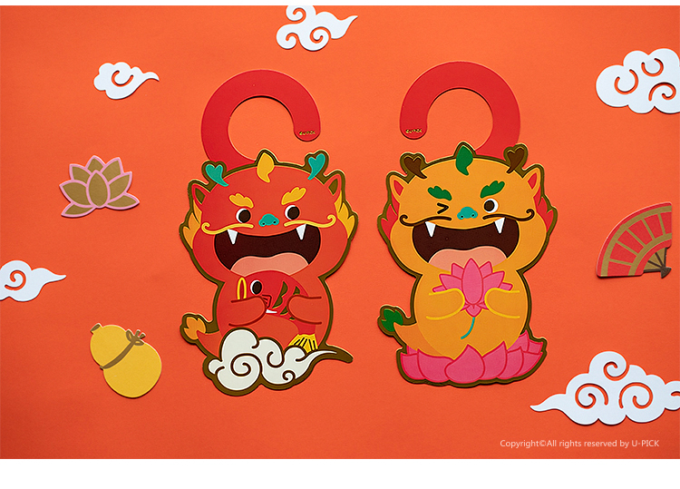 原品龙年门把挂饰-平安来福/开门见喜/合不龙嘴/龙年大吉