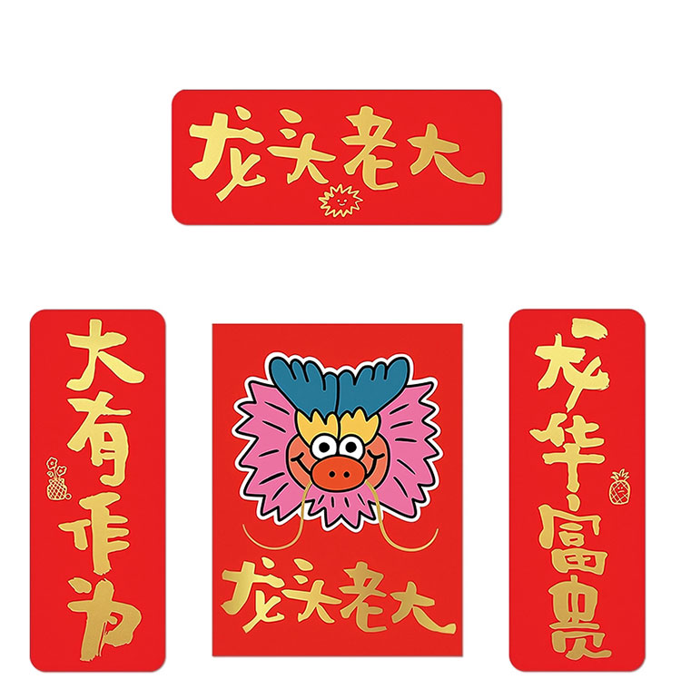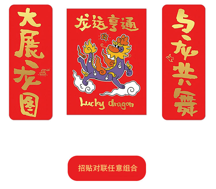 YIZI原创龙年短款烫金对联-与龙共舞/龙华富贵