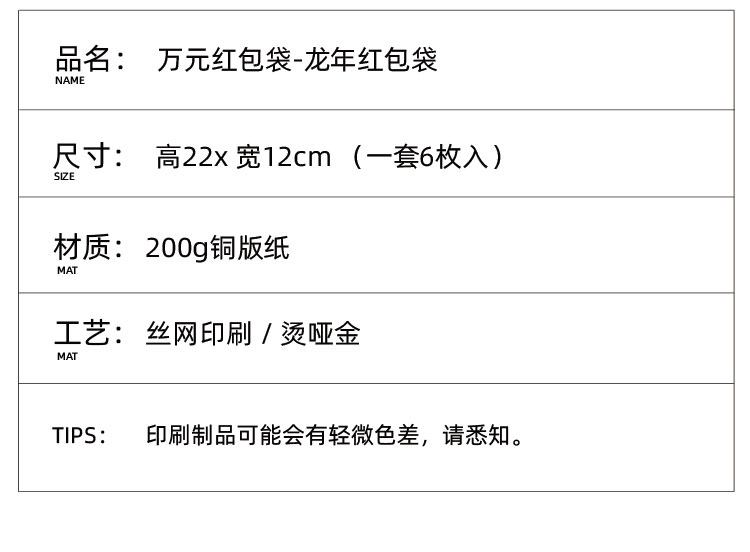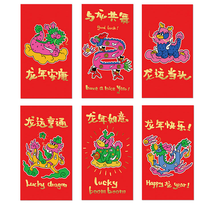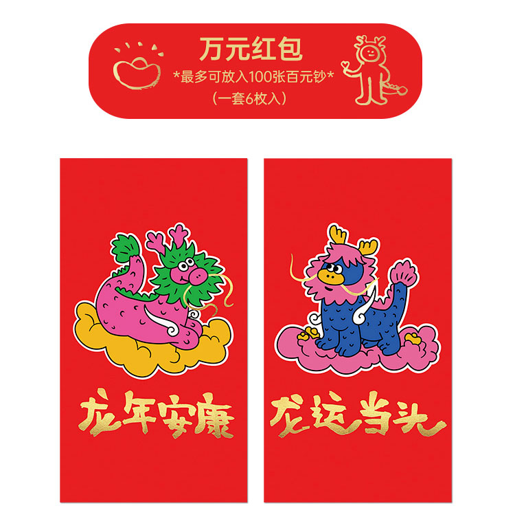 YIZI原创龙年万元大红包礼金袋利是封(1套6枚入)