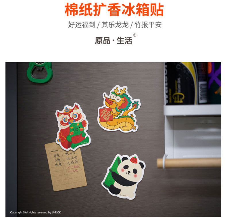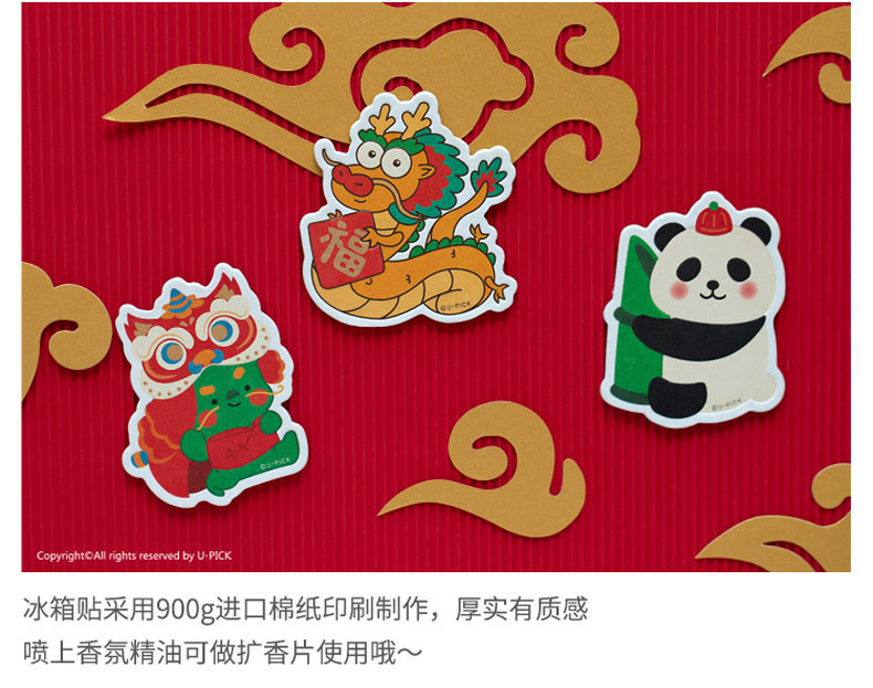 原品棉纸扩香冰箱贴-好运福到/其乐龙龙/竹报平安