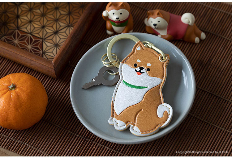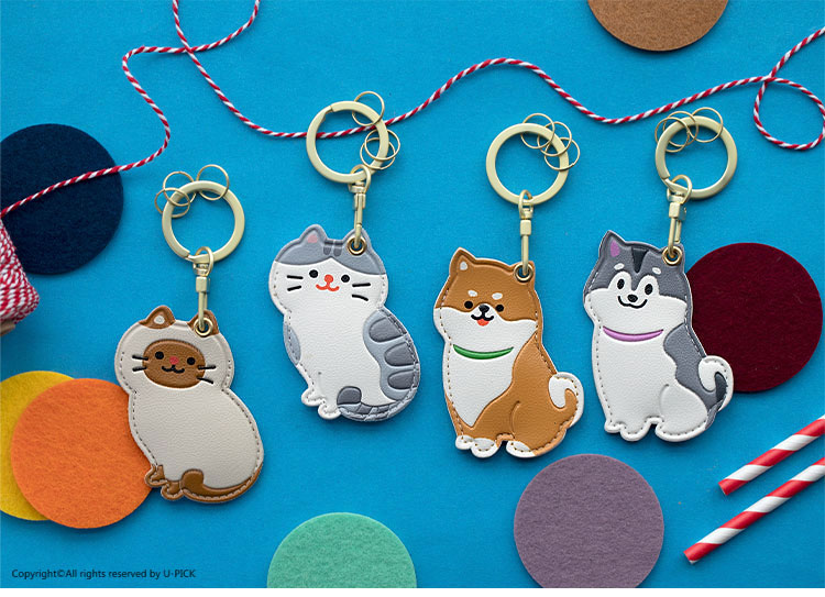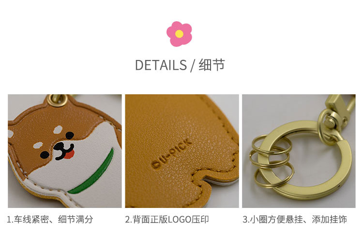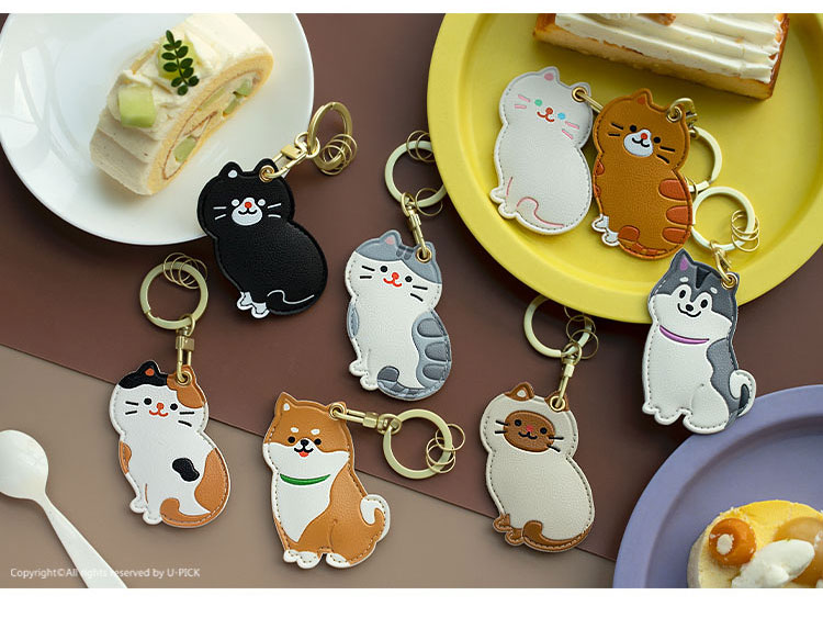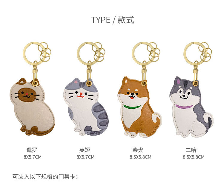 原品生活皮革门襟卡套钥匙扣-暹罗/英短/柴犬/二哈