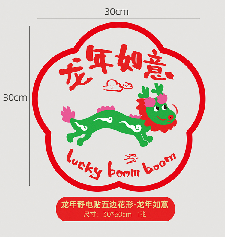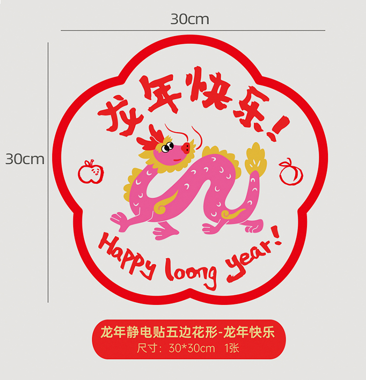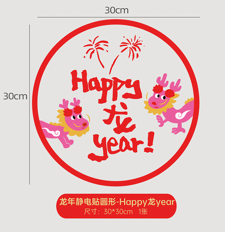 YIZI龙年彩色静电门窗贴第三波-龙年快乐/龙年如意/happy龙year/财运长龙
