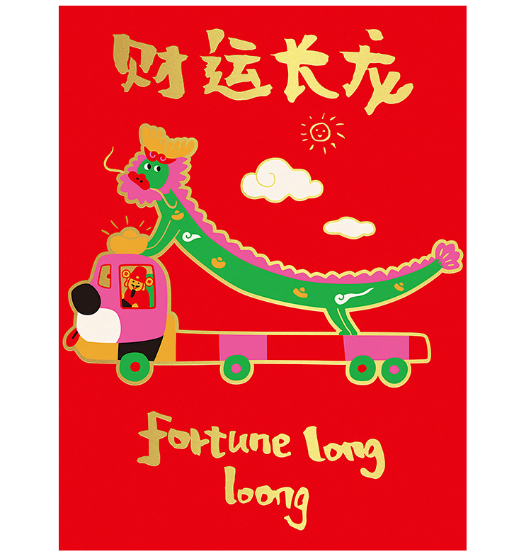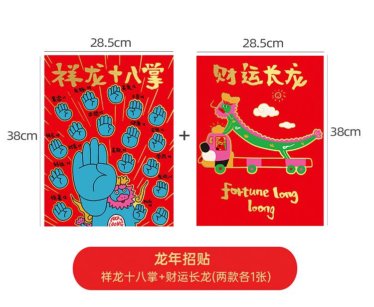 YIZI龙年祥龙十八掌烫金彩色招贴门幅