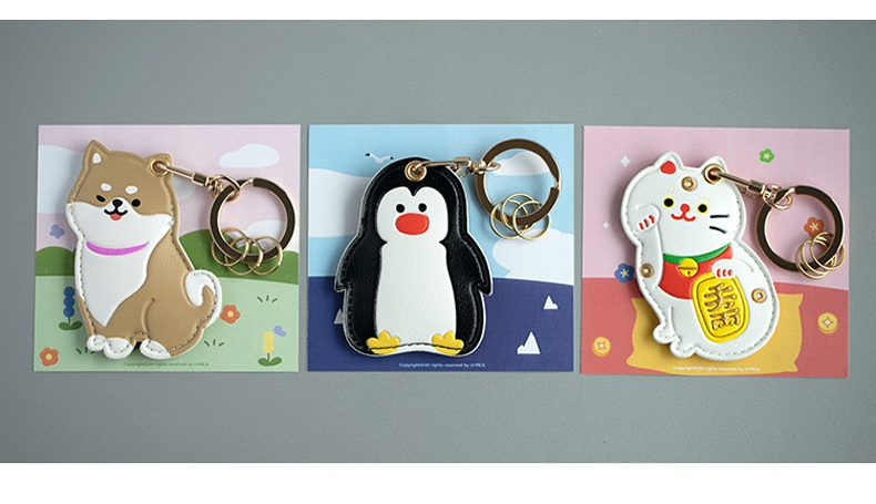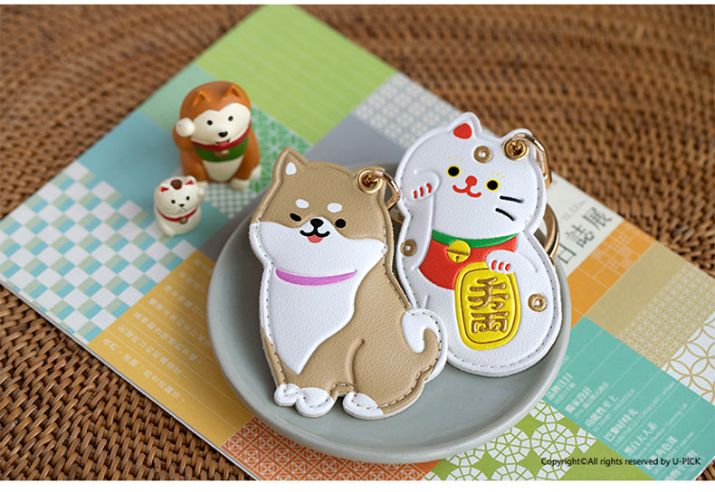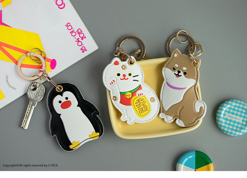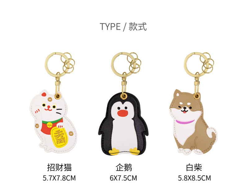 原品生活皮革门禁卡套钥匙扣-招财猫/企鹅/白柴
