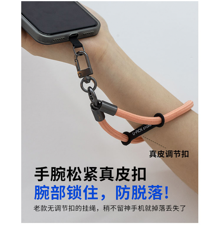 原品可调节短款手机防丢手腕挂绳-灌木沙色/克莱因蓝/蓝橙撞色/清新藕粉/玄武黑灰