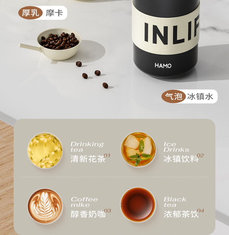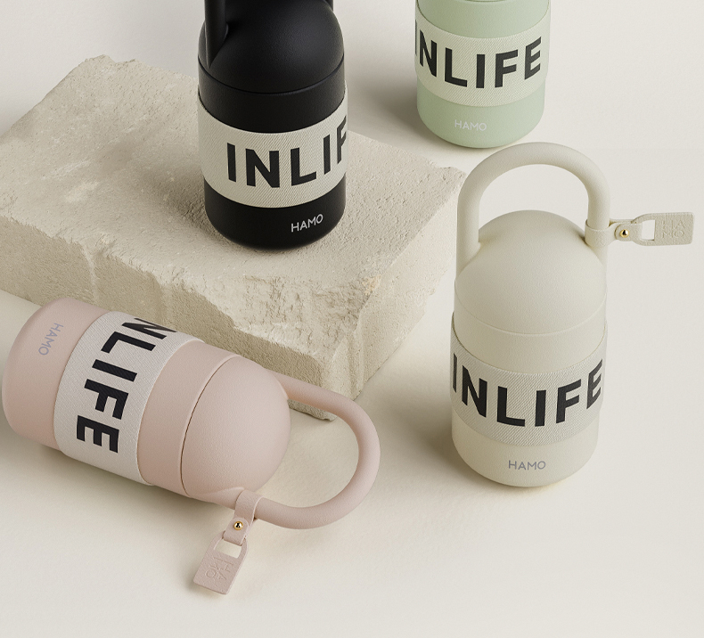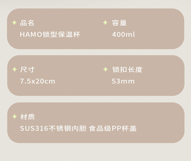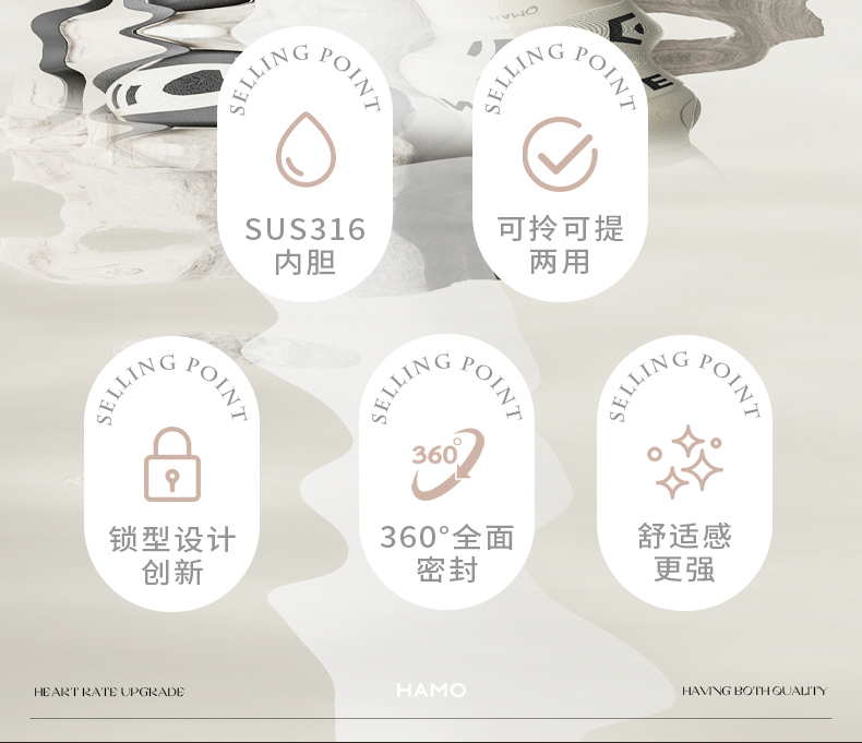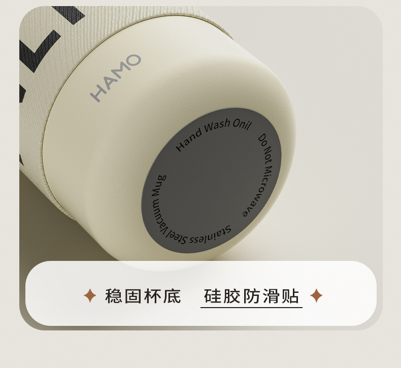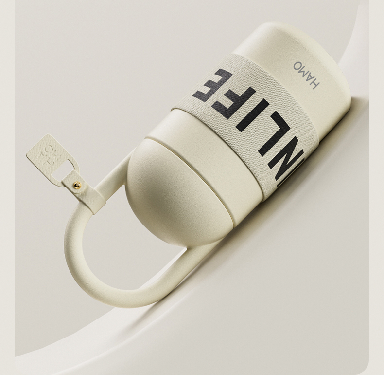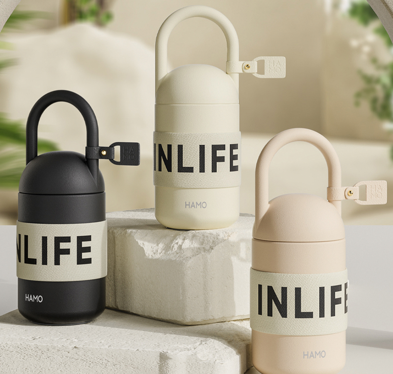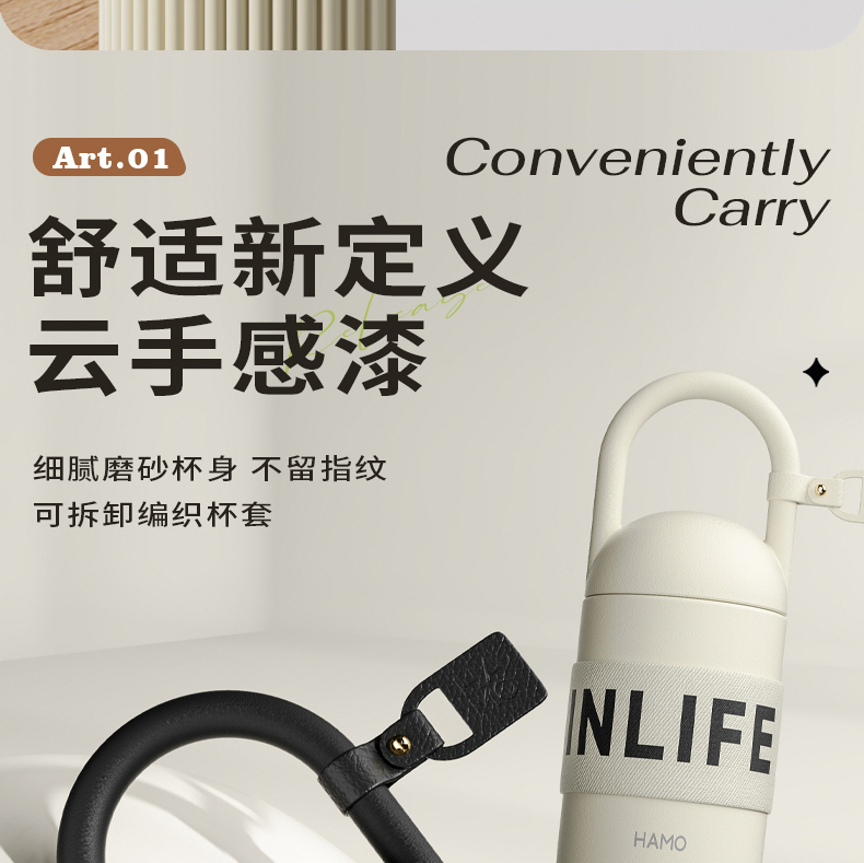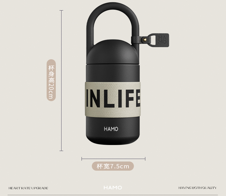 哈墨316不锈钢锁扣手提保温杯-米白/黑色