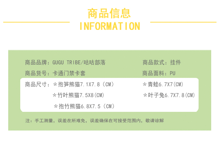 咕咕部落卡通门禁卡套钥匙扣-抱竹熊猫/竹叶熊猫/竹笋熊猫/树叶兔子/荷叶青蛙