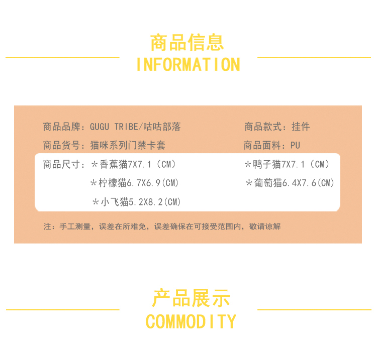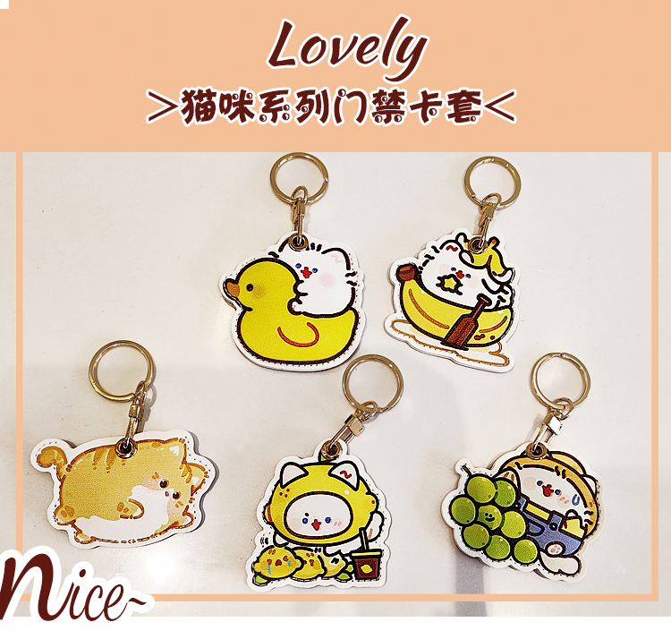咕咕部落猫咪门禁卡套钥匙扣-香蕉猫/柠檬猫/小飞猫/鸭子猫/葡萄猫