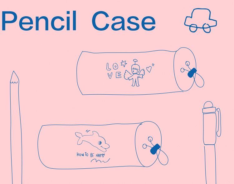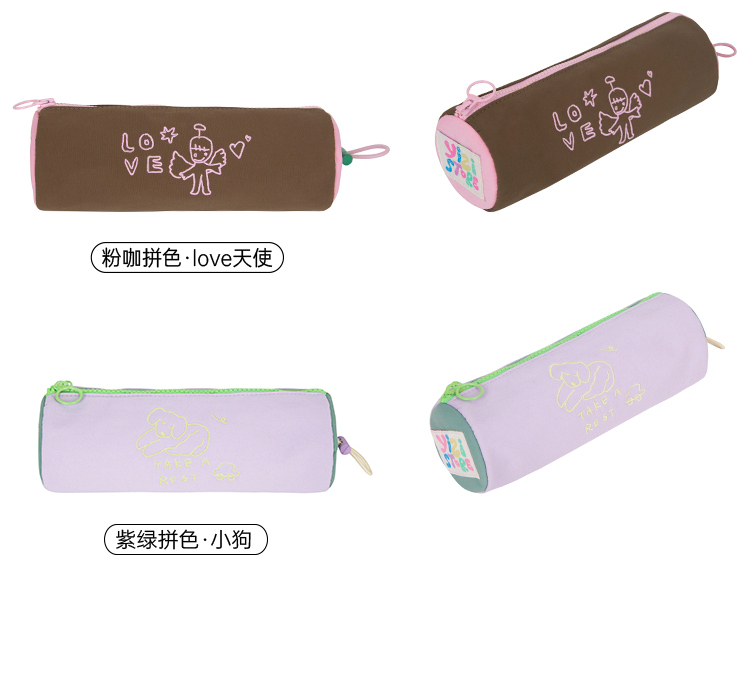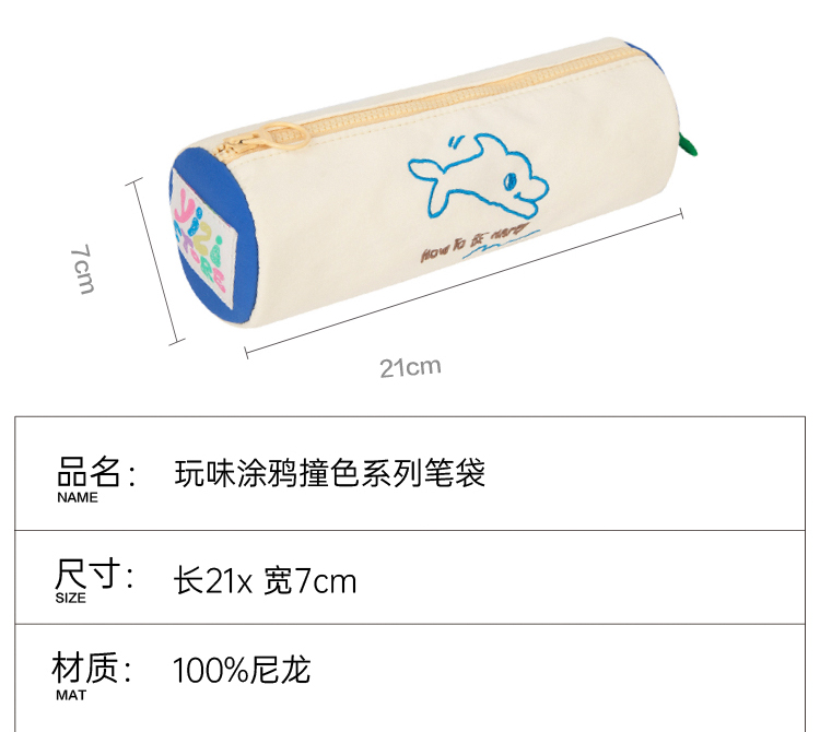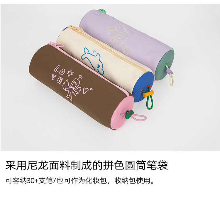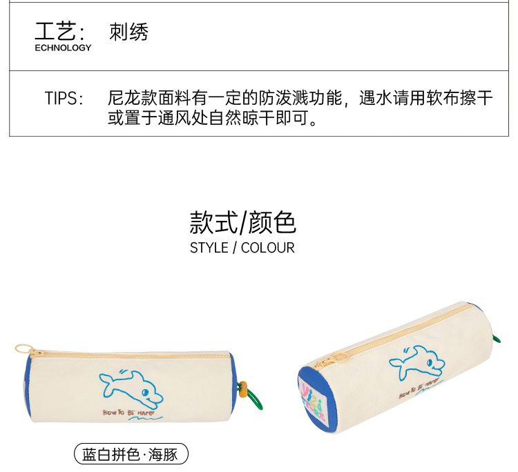 yizi原创尼龙动物刺绣小圆包笔袋收纳袋-海豚/小狗/love天使