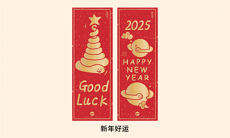 原品蛇年小对联-金蛇快乐/心想事成/新年好运