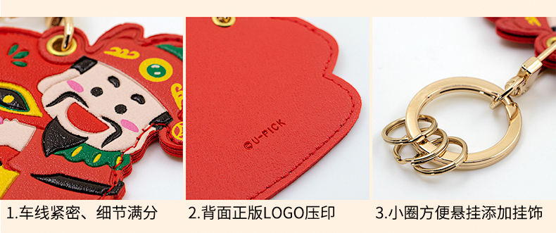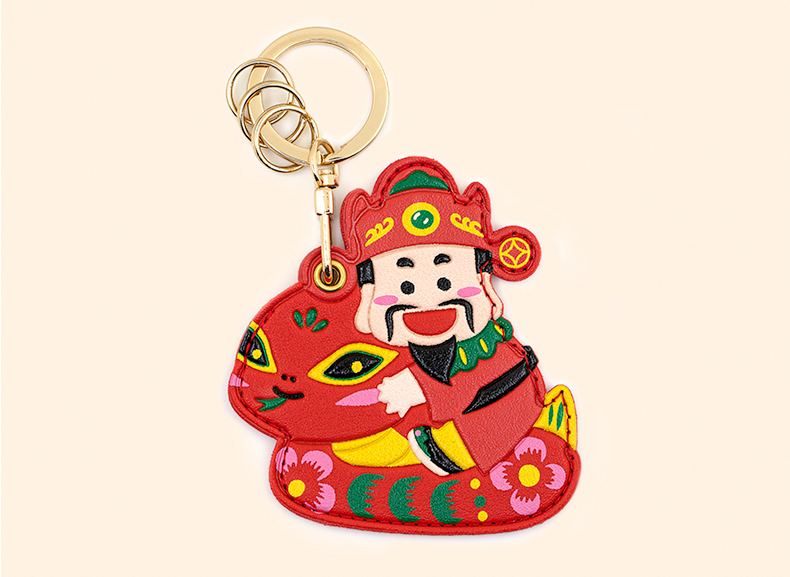原品蛇年财神到皮革门禁卡套钥匙扣挂件挂饰