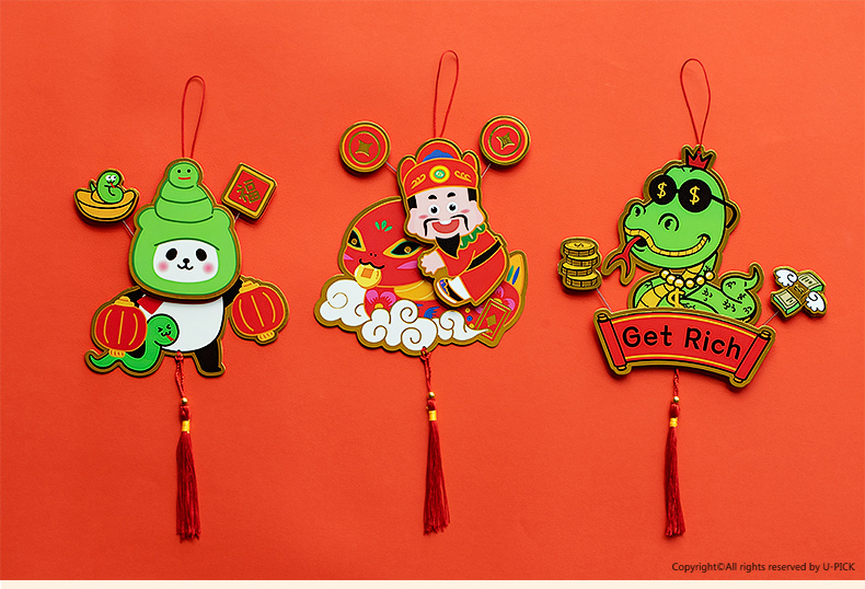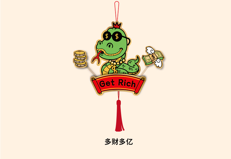 原品蛇年弹弹吊饰-恭喜发财/福到运到/多财多亿