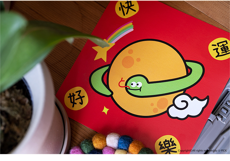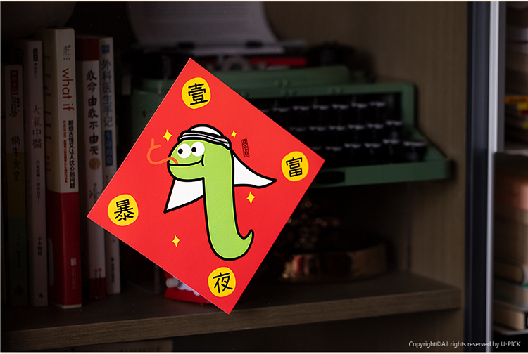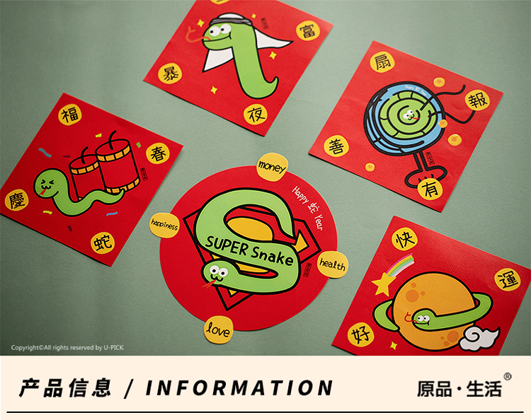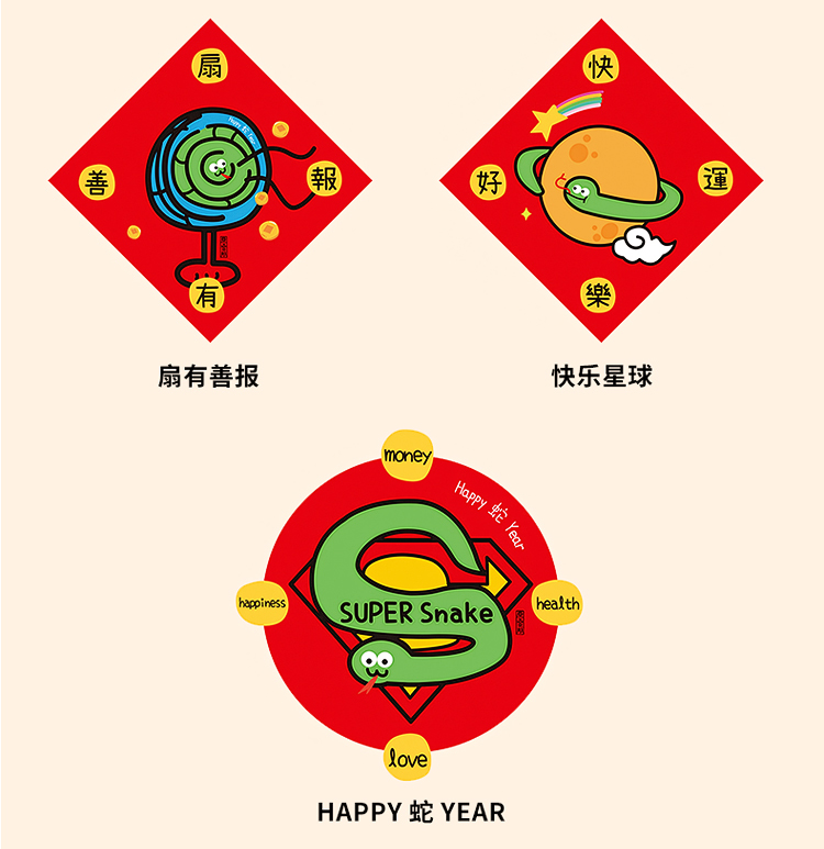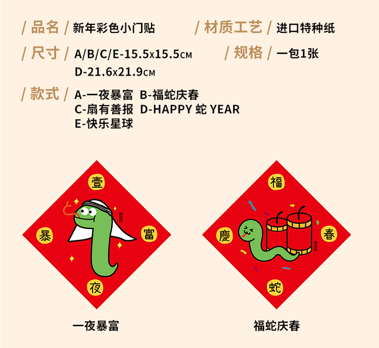 原品蛇年彩色小门贴-一夜暴富/福蛇庆春/扇有善报/Happy蛇Year/快乐星球