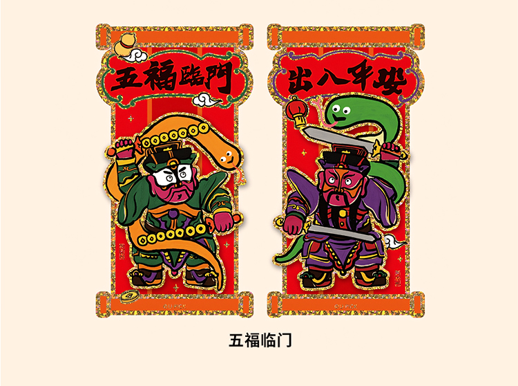 原品蛇年彩色立体对装门贴-恭贺新禧/迎春接福/恭喜发财/五福临门