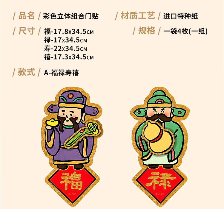 原品蛇年异形(长形)对装门贴-文财双全/出入平安/金童玉女
