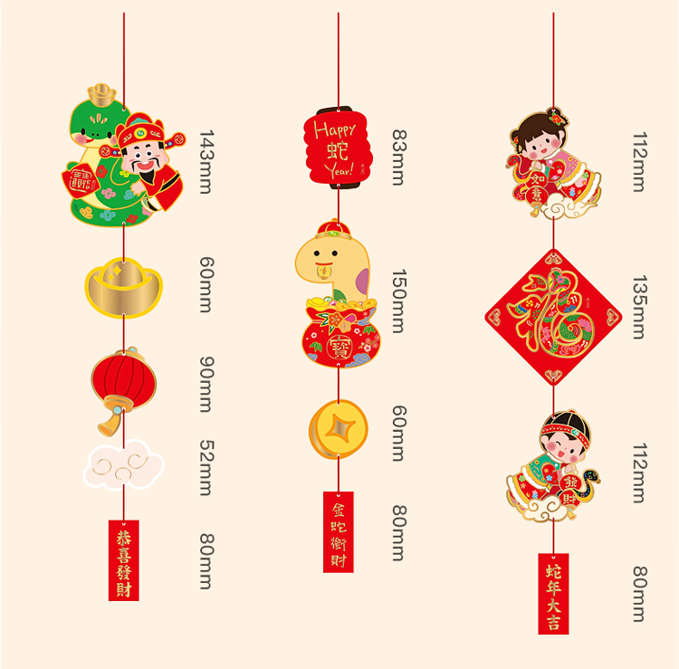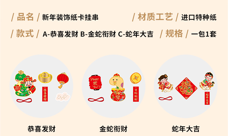 原品蛇年装饰纸卡挂串-恭喜发财/金蛇衔财/蛇年大吉