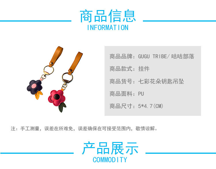 咕咕部落七彩花朵钥匙扣挂饰挂件-深蓝色/粉色/黄色/绿色/红色