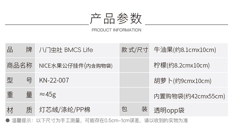 八门虫社水果布艺公仔收纳多用流行扣挂件-牛油果/柠檬/胡萝卜