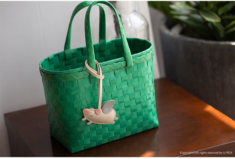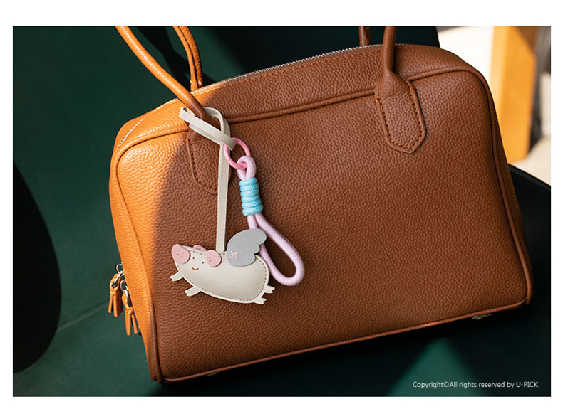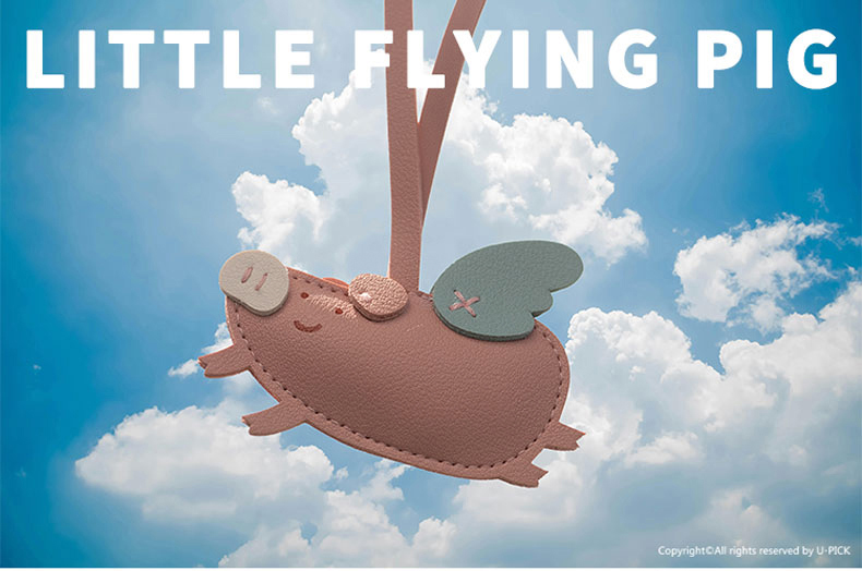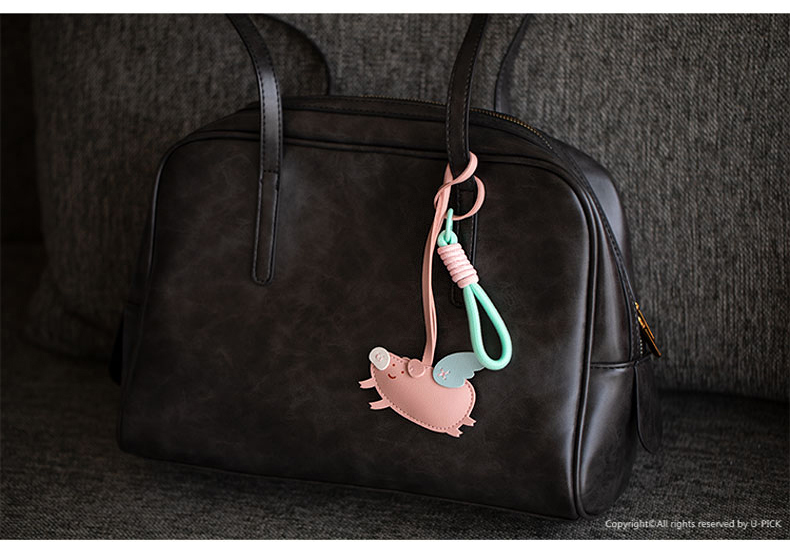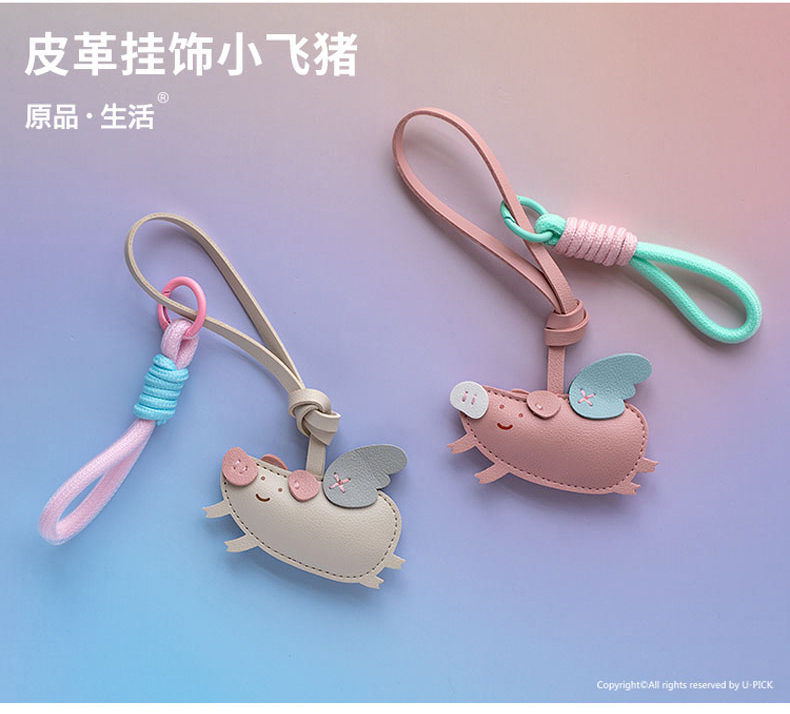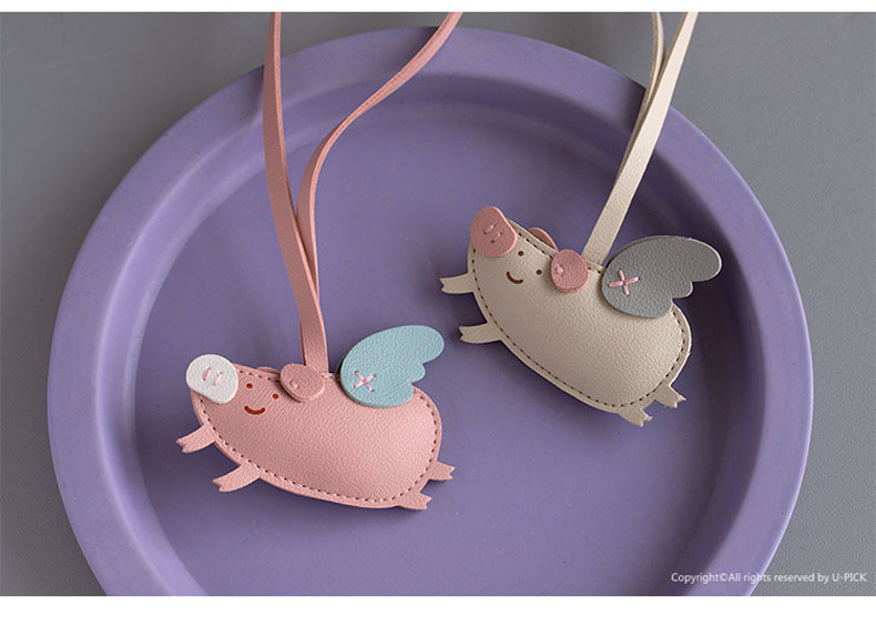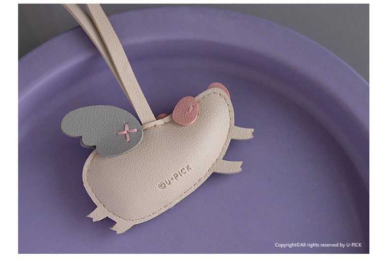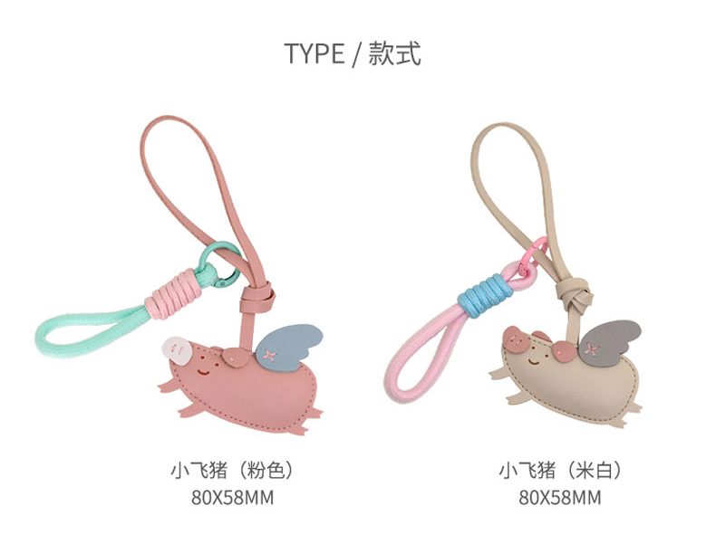 原品小飞猪皮革挂件挂饰钥匙扣包挂-粉色/米白