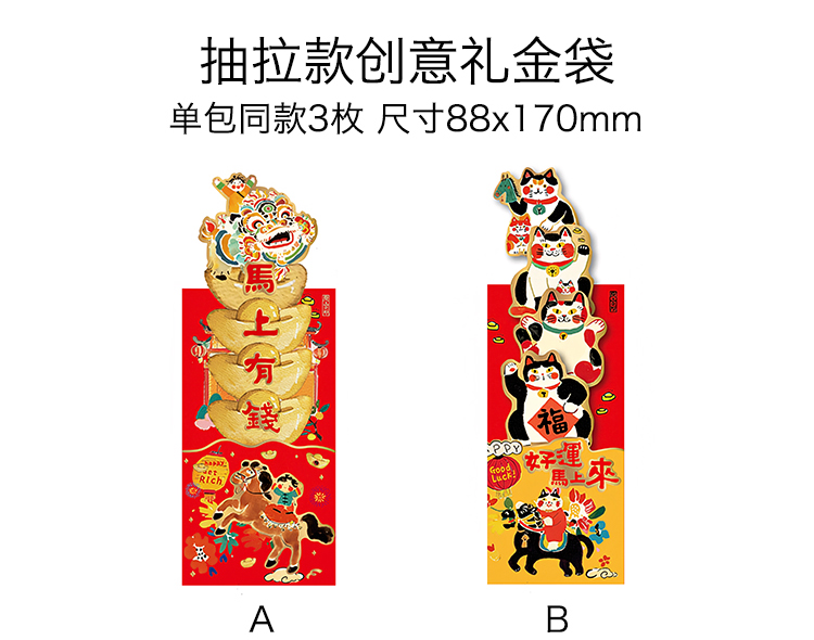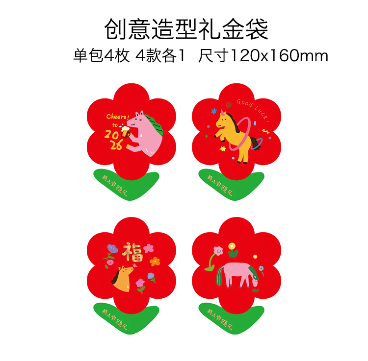 原品2026马年大小号彩色红包礼金袋利是封(6枚入)