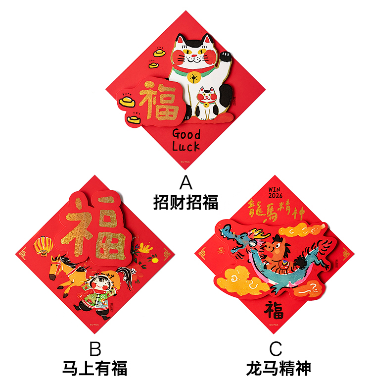 U-PICK原品生活2026马年门贴-招财招福/福字贴