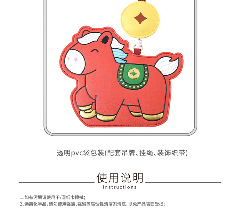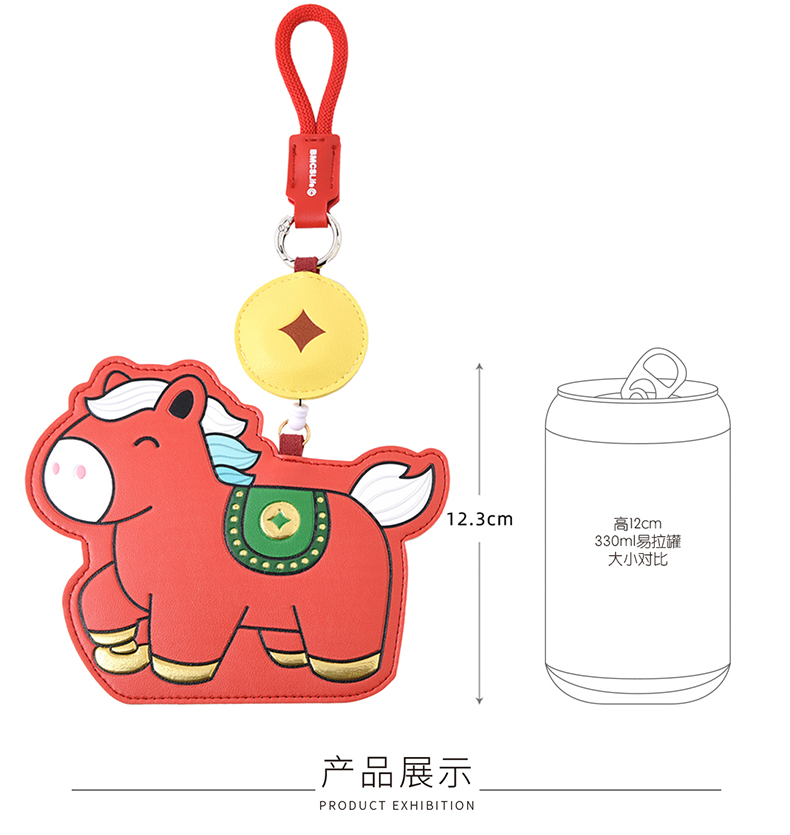 八门虫社马年马上暴富皮质门禁卡套钥匙扣挂件挂饰