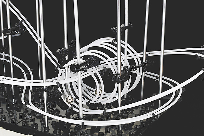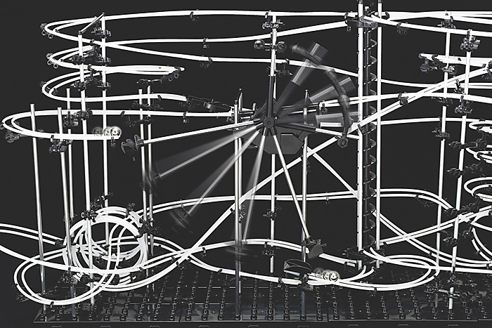 SpaceRarp怎么玩... 首先,你要享受一下设计组装SpaceRarp的痛并快乐着(手会疼的)(取得成就的满足感那才是真的快乐),花费若干时间搭建起你的过山车之后(视聪明程度不等需要2~N小时),把小钢珠(享受俯冲、720度翻滚、失重感的享受者——也许它不觉得是享受,无论如何)放在升降机底部,看着它被一颗电池产生的上升力缓缓带起,升至高处——抛下(或落下)!——升起!——旋转!——升!——落!(完全依照我们玩过山车的心情来想象吧)——无限循环,直到有一个人也许发发善心,轻轻将它停下来,否则它将永远在这个轨道上循环……所以我也总想叫它作永动球。