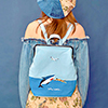 YIZI鲨鱼系列帆布刺绣口金双肩包-鲨鱼/手掌/摩托女人