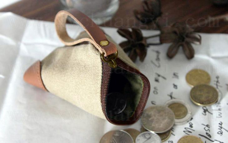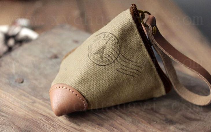 真皮帆布三角零钱袋