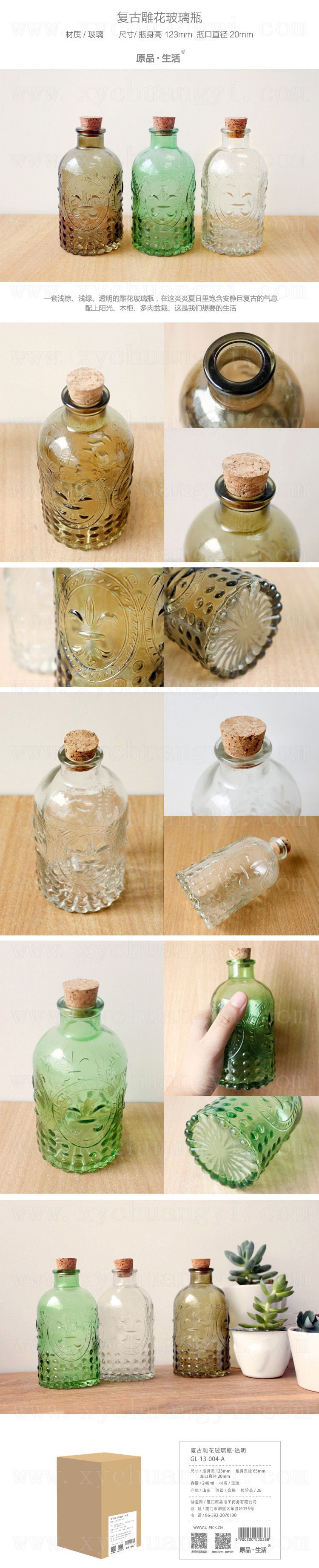复古雕花玻璃瓶-浅绿/浅棕/透明