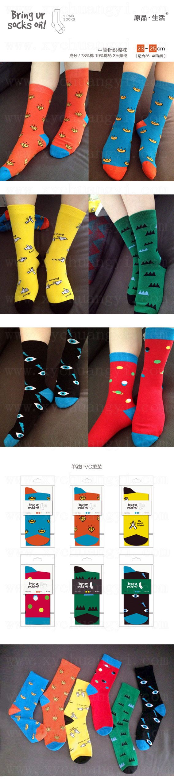 中筒针织棉袜-眼睛/丛林/星球/手势/钻石/元宝