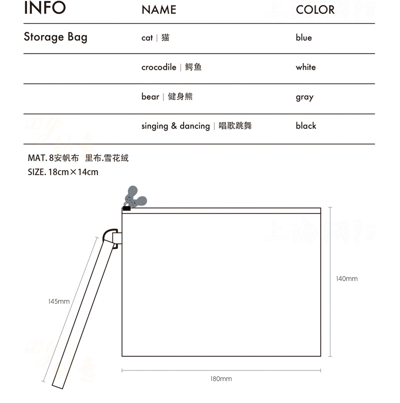 komeshop帆布双链收纳包-猫/鳄鱼/健身熊/唱歌跳舞