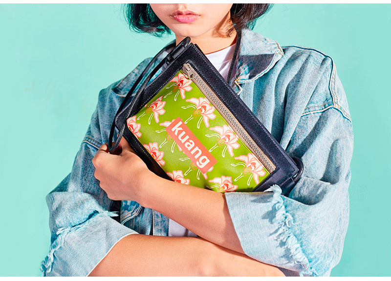 哐花村对开书本斜挎包-花朵/正方体/三角