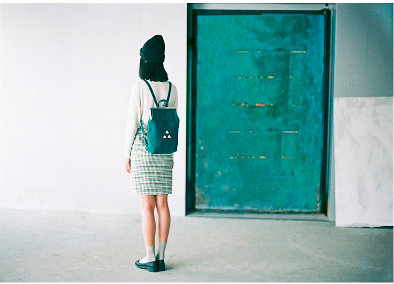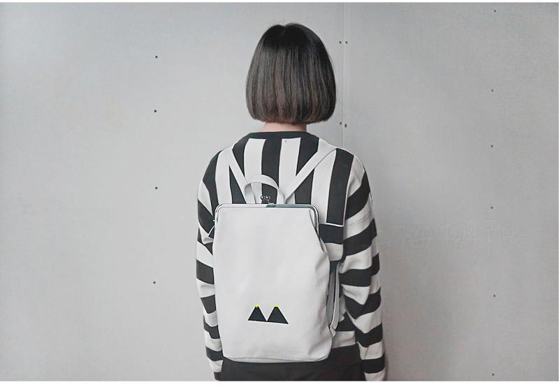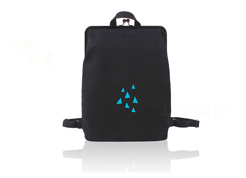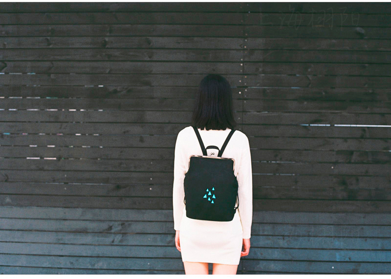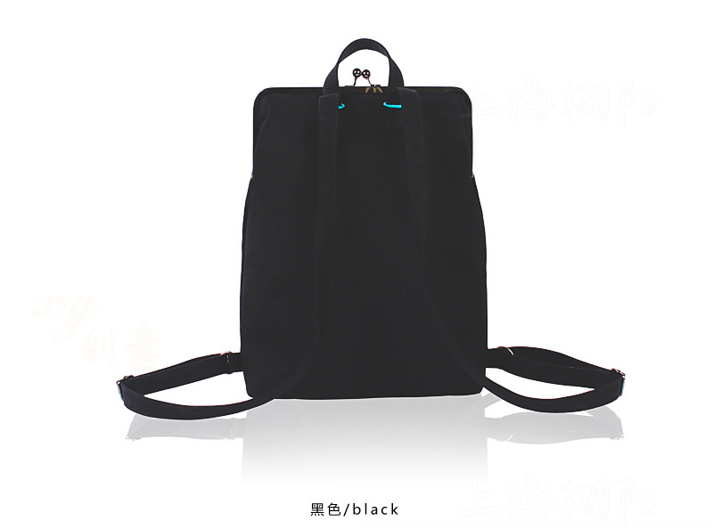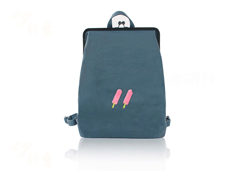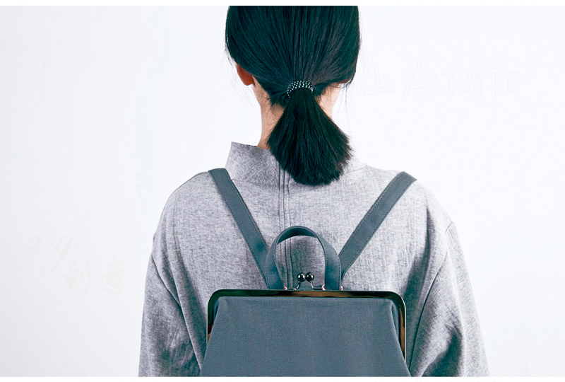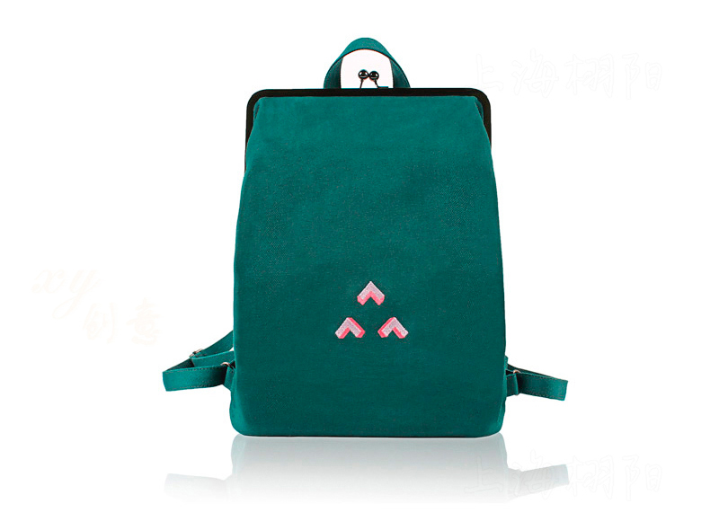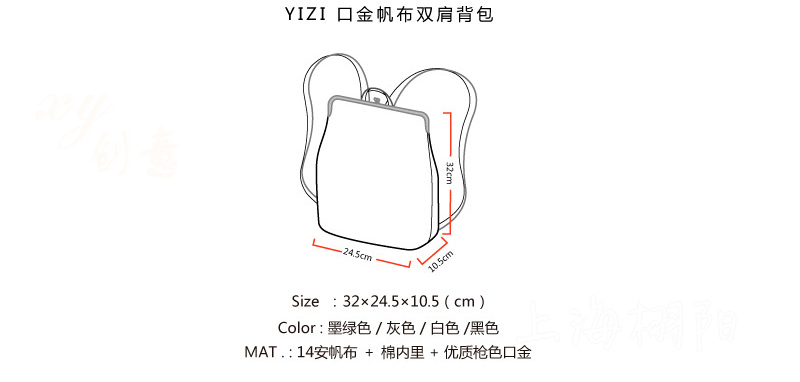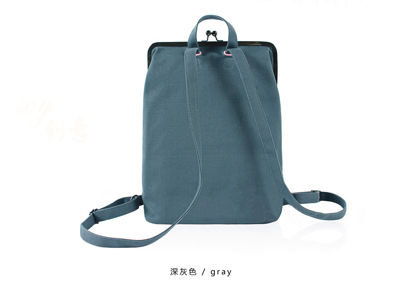 YIZI文艺帆布口金刺绣双肩包-黑/墨绿/白/深灰
