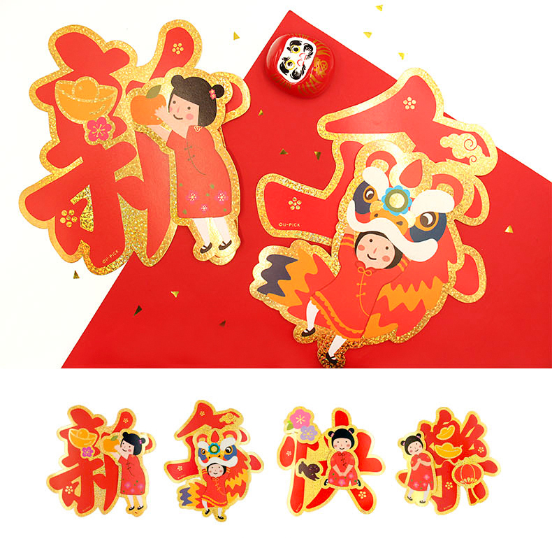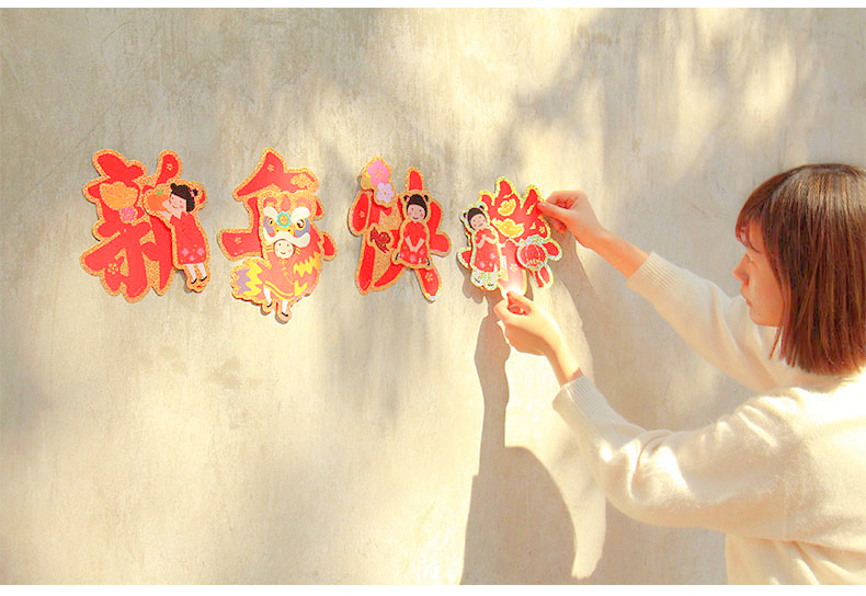 原品彩色立体长条门贴-迎春接福/吉星高照/出入平安/家肥屋润