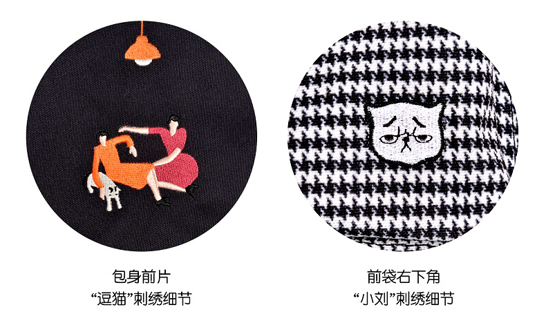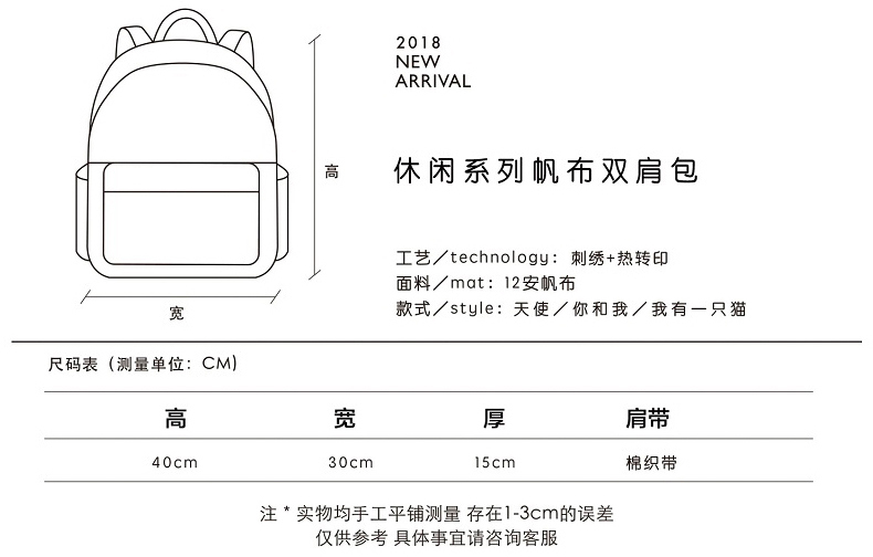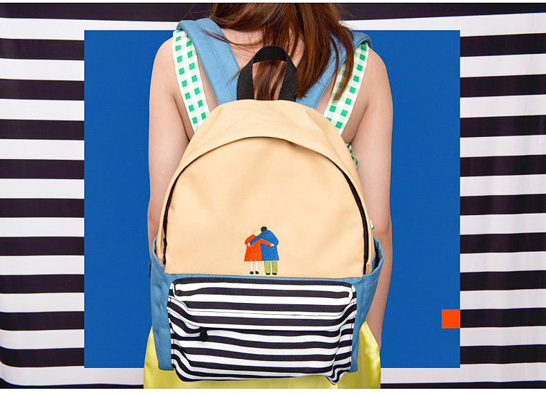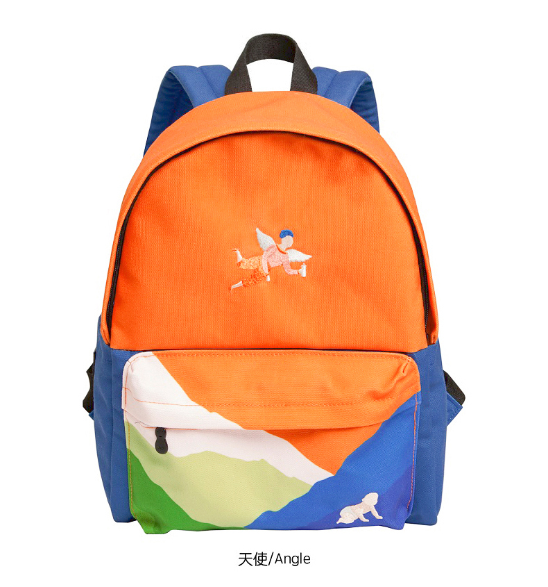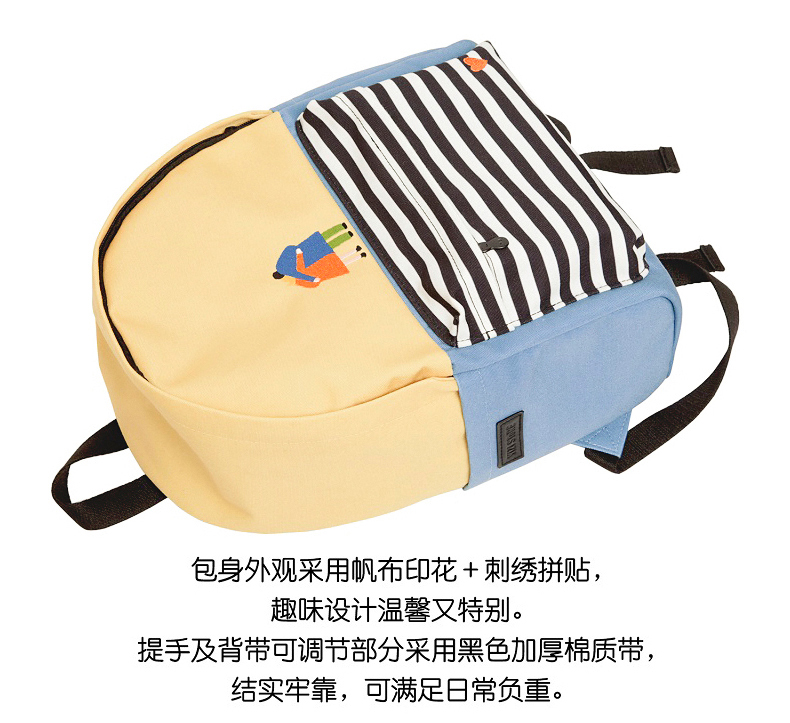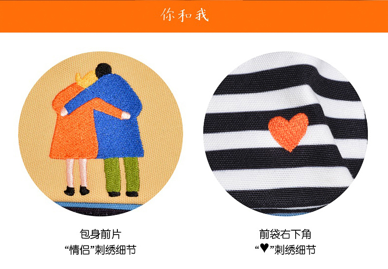 YIZI帆布刺绣休闲情侣双肩包-蓝橙天使/黑色我有一只猫/黄色我和你