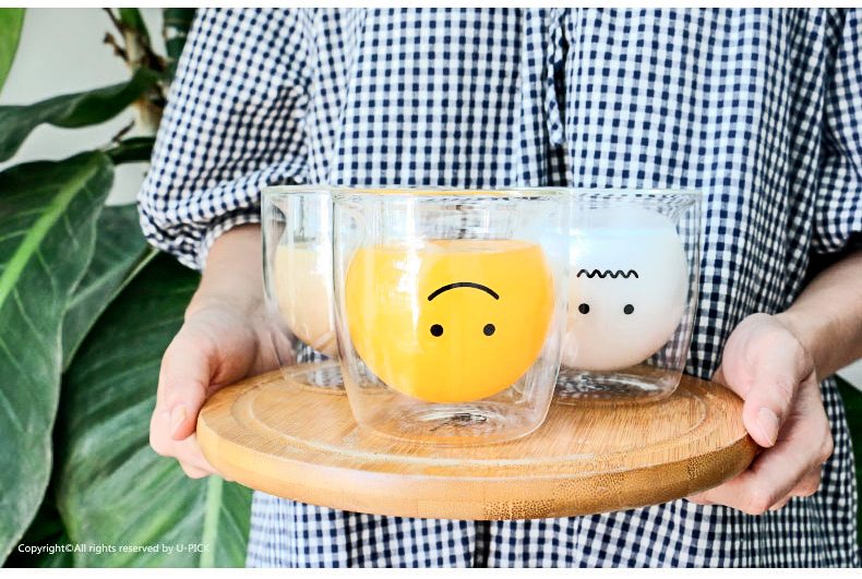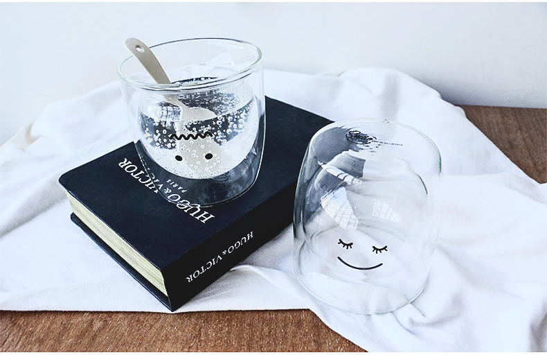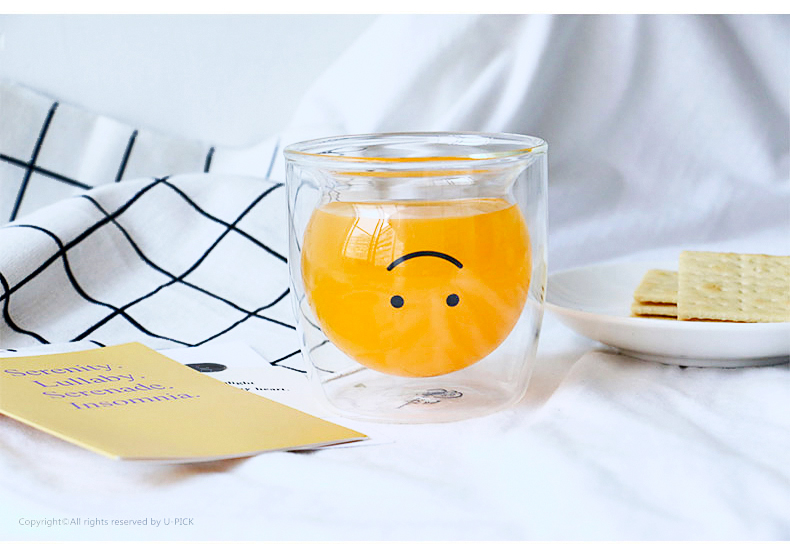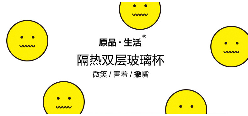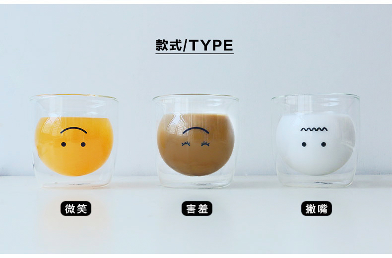 原品表情隔热双层玻璃杯-微笑/害羞/撇嘴